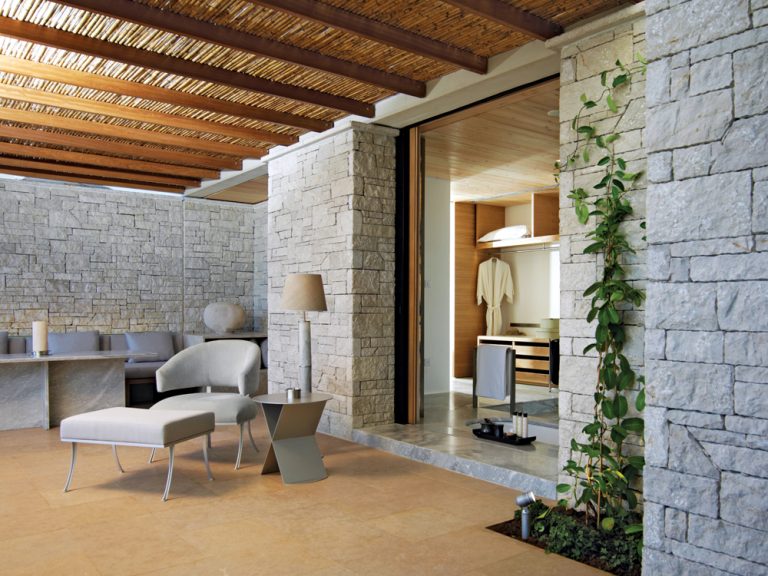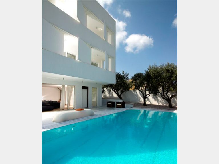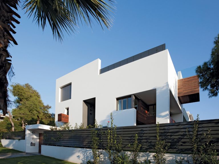 The residence was built on a flat, rectangular site plot in Glyfada, with its long sides…