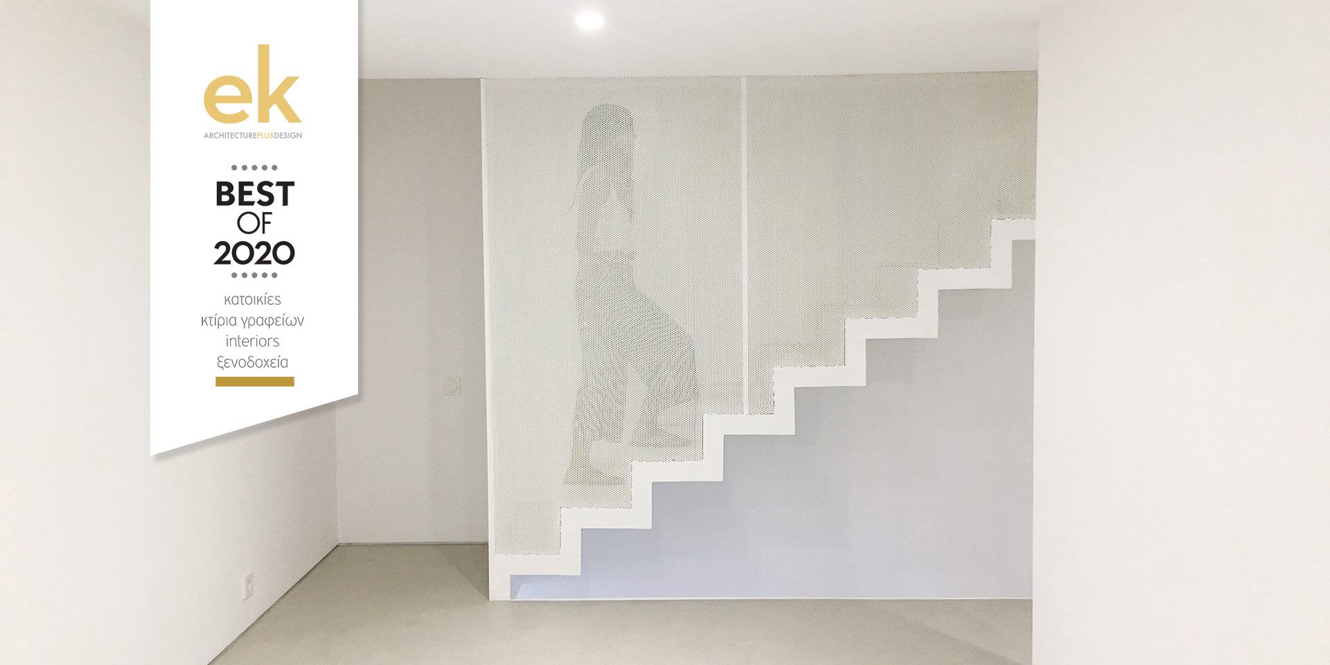 The new art gallery is located in one of the most picturesque quarters of Piraeus, among old warehouses and workshops. Guided by the identity of the exhibition space as a “white box”, the design employs clean, austere lines, in a minimalist white background. The space alludes to a white canvas for highlighting the exhibited artworks, and the architectural composition establishes a quiet dialogue between modern and new. In this framework, the façade maintains its original appearance, and so does the century-old wooden roof, lit from below; those elements are brought into contrast with the acutely angular white walls underneath. The choice of the cool grey cement floor, combined with a few more extravagant touches in the bathrooms, further contribute to this goal. The white perforated metal sheet mezzanine and stairs, despite their modern appearance, allude to local metalsmith workshops, which had an active role in the construction of the project. This discreet architecture reflects the conversation between contemporary art, sheltered in the exhibition space, and the features of the urban surroundings.