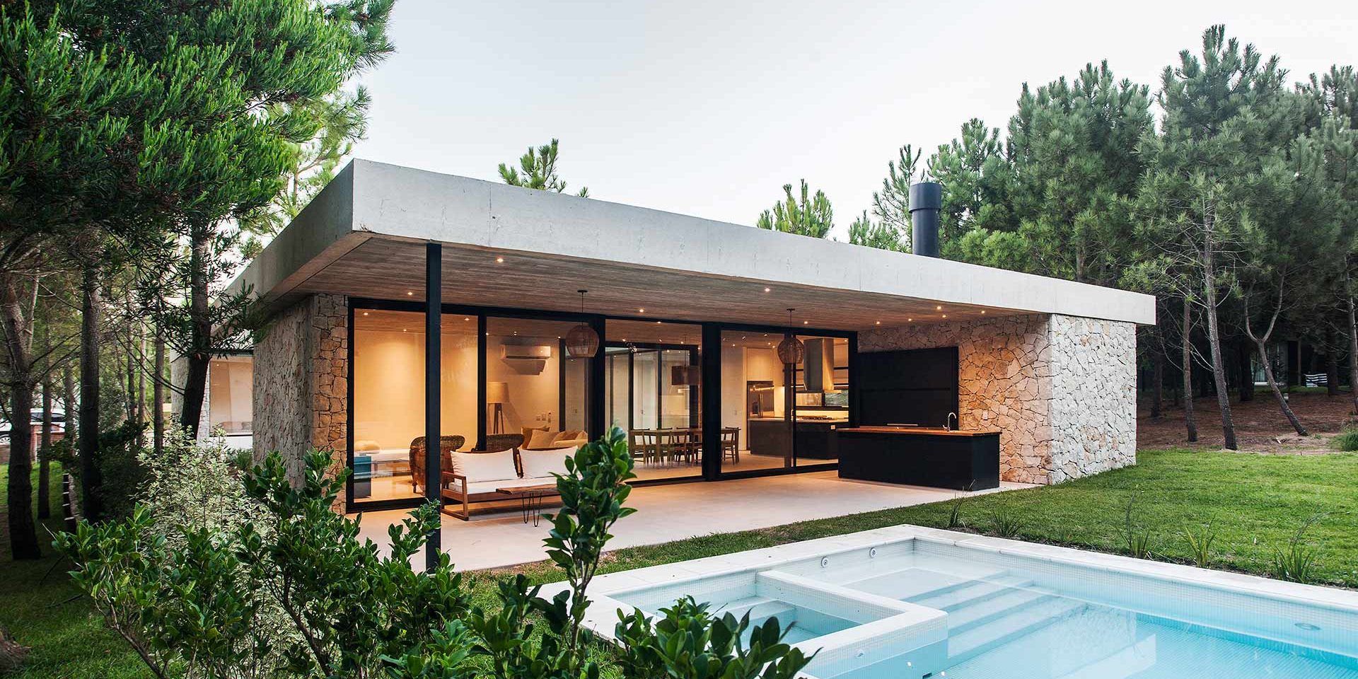 The beach house is located on the Atlantic coast of Argentina 500m away from the sea. The intention was to animate the house using a path passing through a forest, through patios which capture light and articulate the spaces. The project is developing on one floor where the central patio divides the house into two volumes, one more public and the other one private. A second patio allows the connection with nature from the bedrooms without losing privacy, with a wooden enclosure that generates a rhythm of light and shadow, forming the main facade.