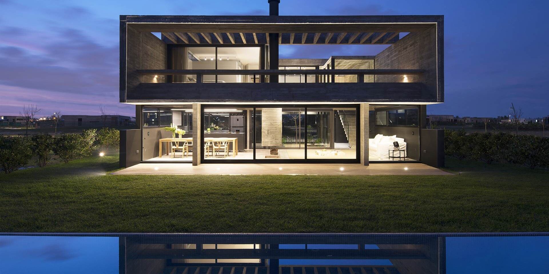 The house is designed for a young couple (Belen, co-author of this project, and Martin) who are looking forward to growing their family together. The decision was to work out a house of three bedrooms, a kitchen and dining room that integrate with the social spaces, a wide semi-covered area that holds the grill, a fireplace inside the social area, a swimming pool, a semi-covered space to keep two cars, the main bedroom, en-suite with a dressing room, and the second and third bedrooms that share the bathroom.
