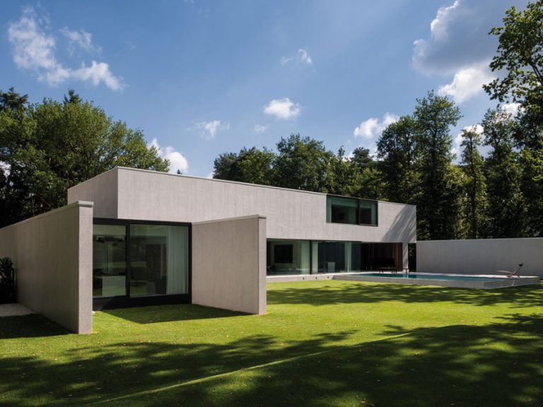 The residence’s central space, set in the center of the plot, is accessed via a long…