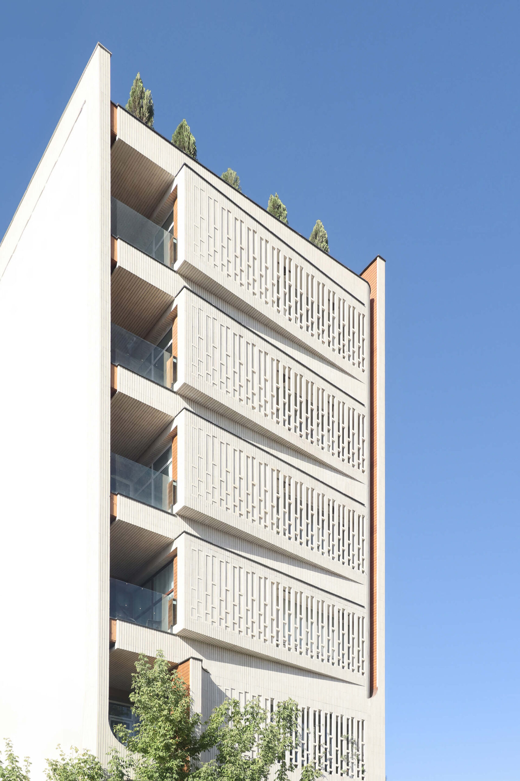 Το έργο καθορίζει το δικό του υψομετρικό μέτρο σε σχέση με την ανθρώπινη κλίμακα και τους μελλοντικούς γείτονες. Η παρουσία του υφιστάμενου δέντρου ενέπνευσε τη δημιουργία μιας βεράντας που επεκτείνει κατακόρυφα αυτό το ίχνος πρασίνου στους ανώτερους ορόφους, επιτρέποντας στους κατοίκους να διαμορφώσουν με τον χρόνο τις δικές τους φυτεμένες μεταβάσεις.