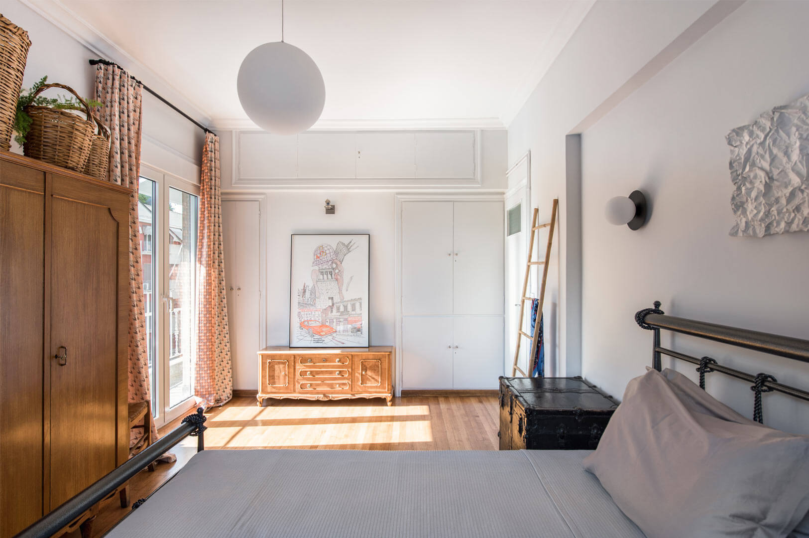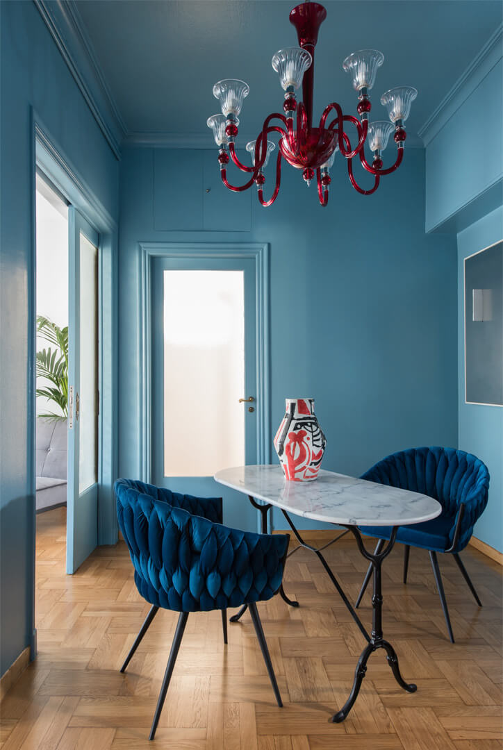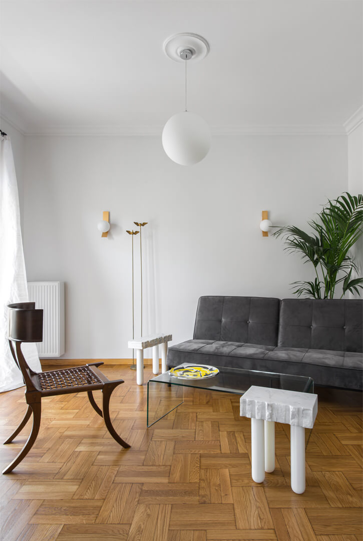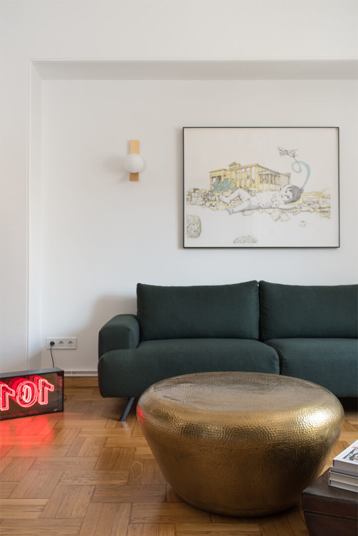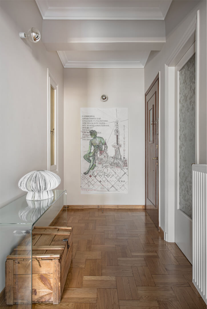 Η ανακαίνιση του διαμερίσματος της δεκαετίας του ’50, επιφάνειας 110m², παρουσίαζε προκλήσεις και ευκαιρίες. Η εποχή του Ελληνικού μοντερνισμού, που συνέπεσε με την ανάπτυξη της Αθηναϊκής ανώτερης μεσαίας τάξης, άφησε σημαντικό αρχιτεκτονικό αποτύπωμα στο κέντρο της Αθήνας. Η μεταπολεμική ανοικοδόμηση σήμαινε πολυώροφα τσιμεντένια κτίρια διαμερισμάτων. Η διακόσμησή τους, όμως, δεν ήταν κάτι που προκαλούσε την περιφρόνηση αλλά, απεναντίας, ήταν επιθυμητή.