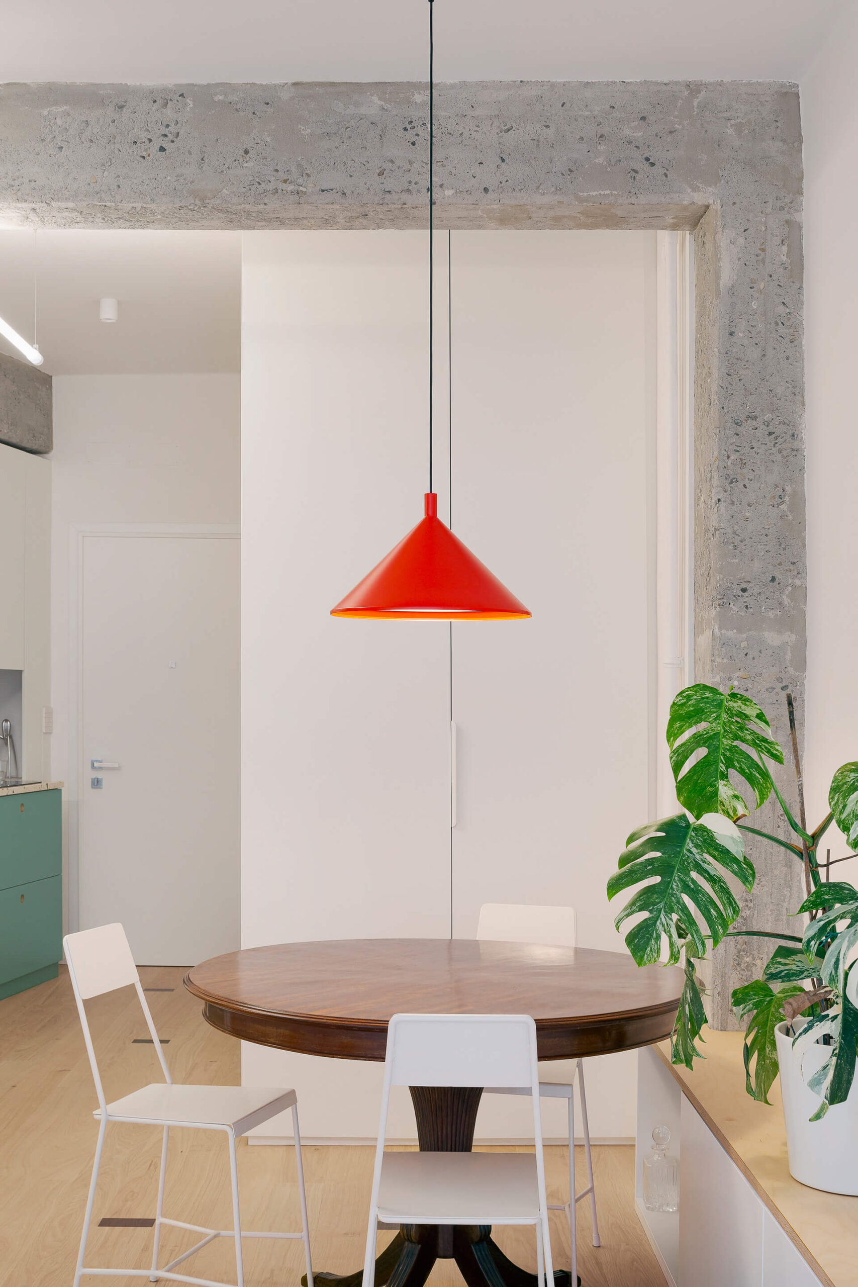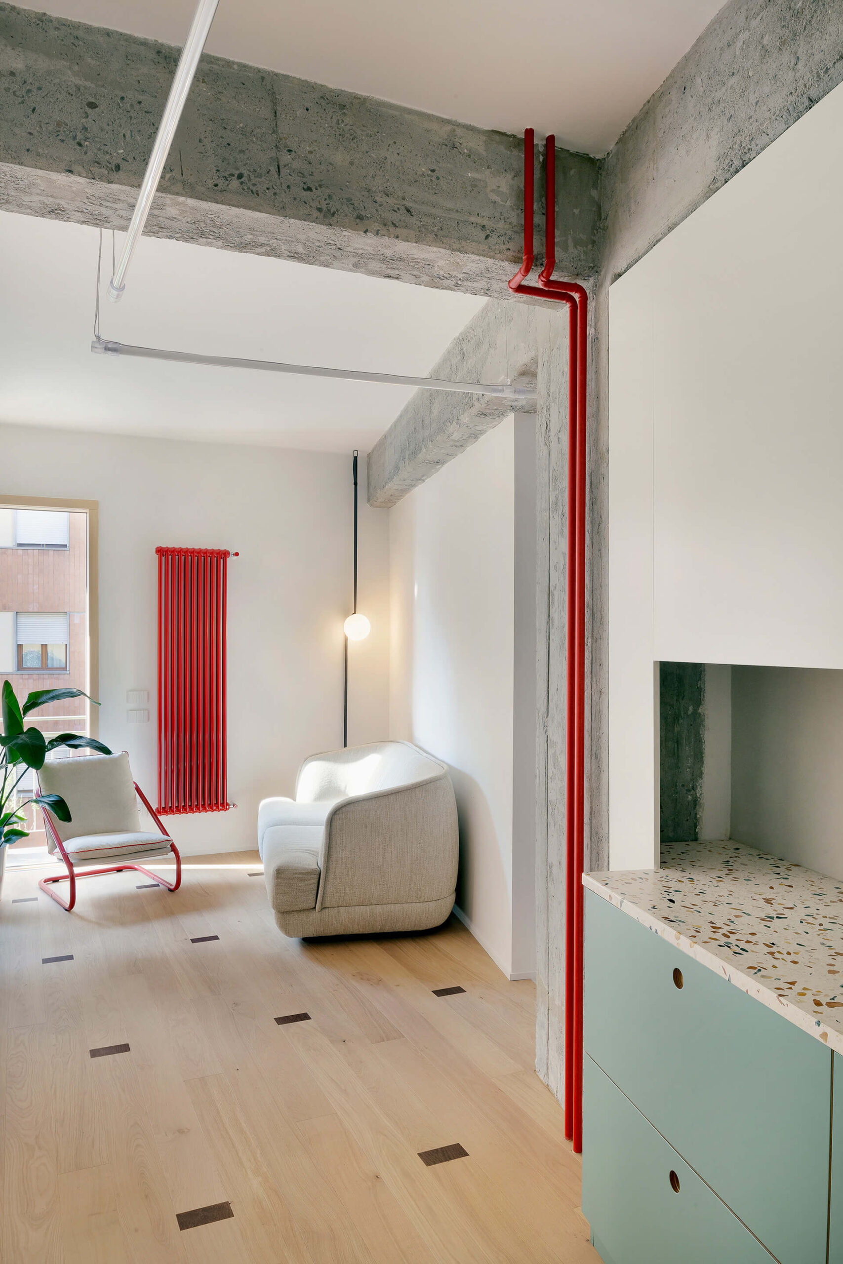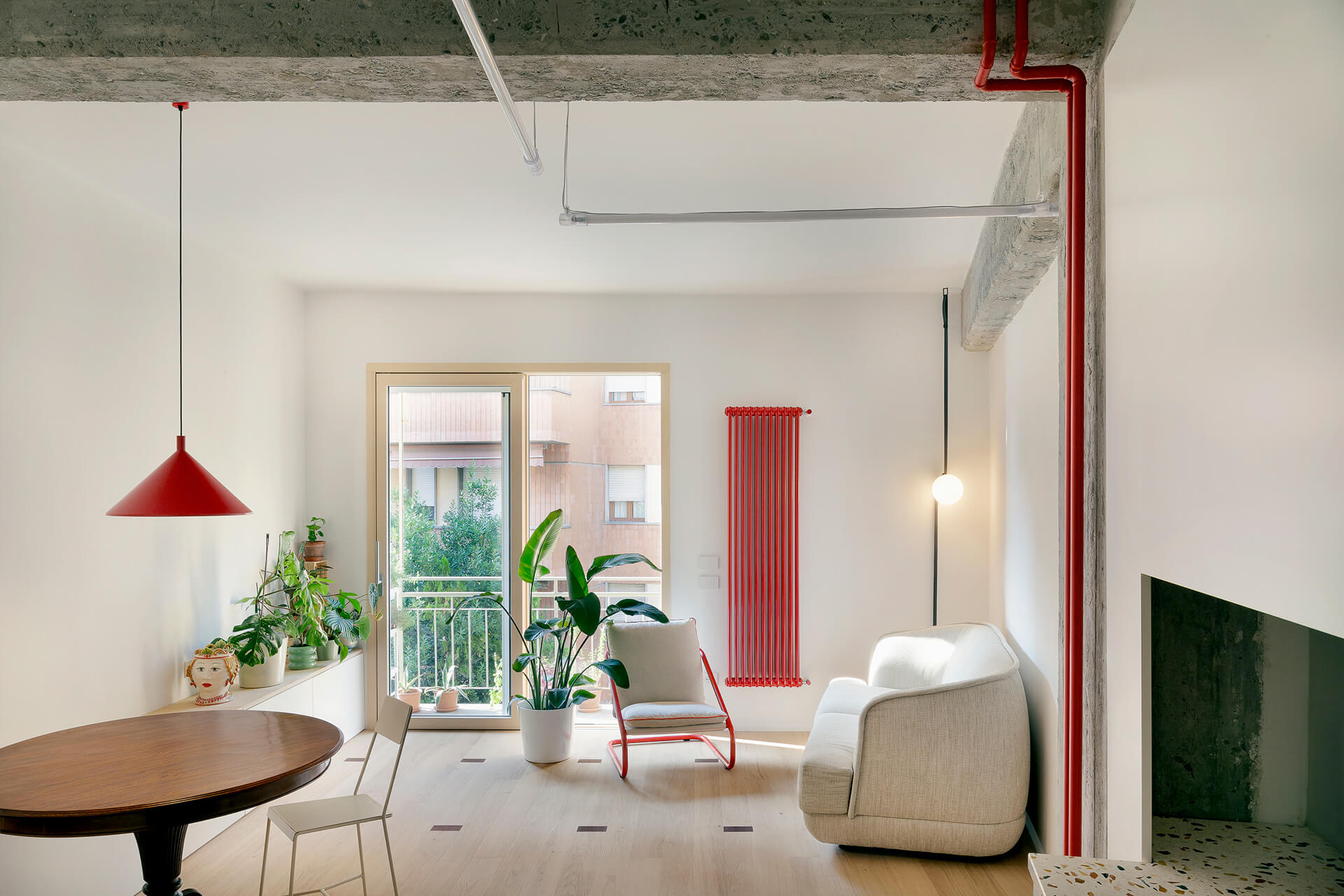 Η διαρρύθμιση του διαμερίσματος επανασχεδιάστηκε ώστε να δημιουργεί ρευστές συνδέσεις μεταξύ των χώρων, διατηρώντας παράλληλα την αίσθηση της ιδιωτικότητας όπου ήταν απαραίτητο. Οι τοίχοι αναδιατάχθηκαν για να βελτιστοποιήσουν την κυκλοφορία και να επιτρέψουν στο φυσικό φως να διαχέεται βαθύτερα στο εσωτερικό. Οι μεταβάσεις μεταξύ των δωματίων μελετήθηκαν προσεκτικά, ώστε να διαμορφώνουν μια συνεχόμενη ροή που ενισχύει την αίσθηση ευρυχωρίας.