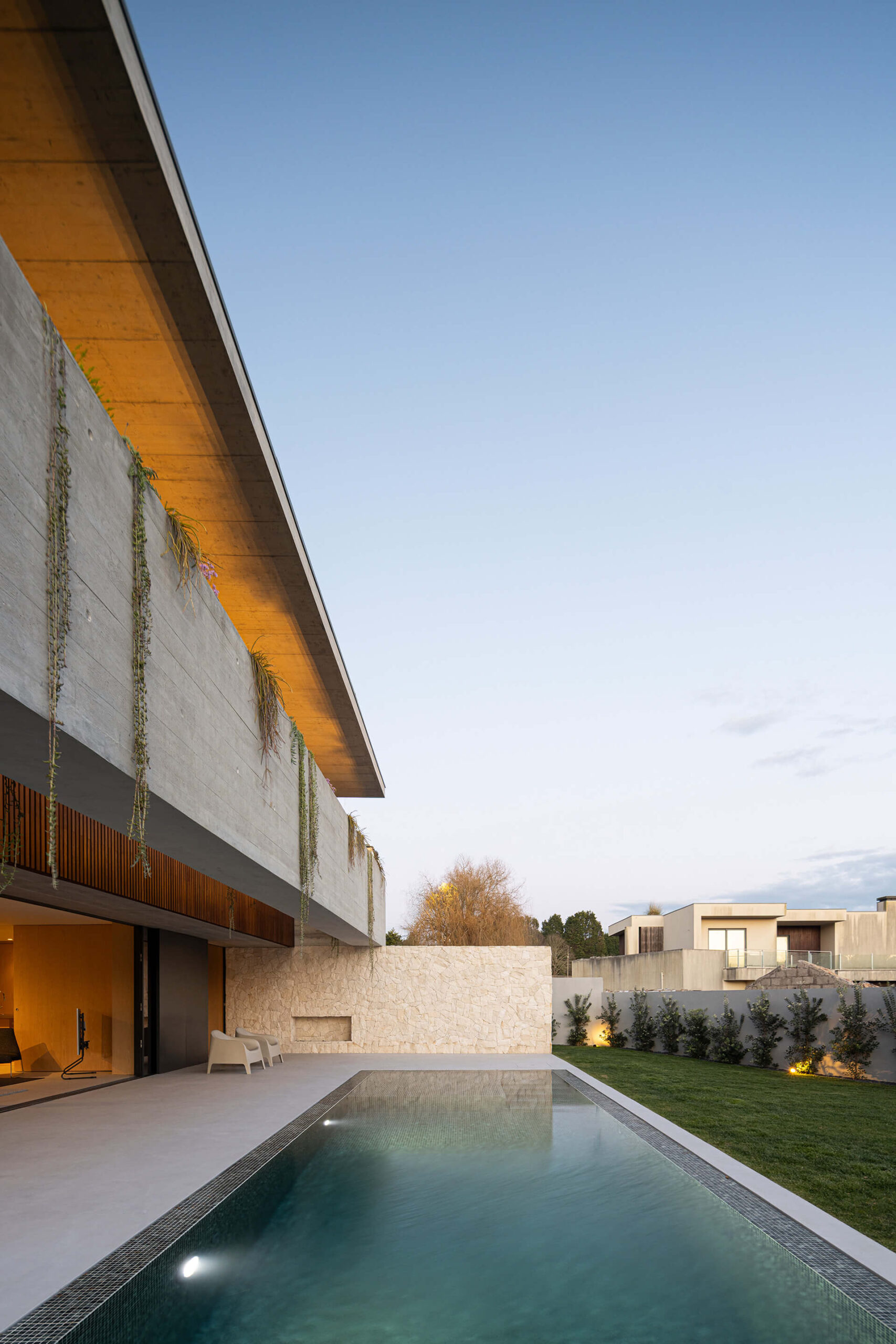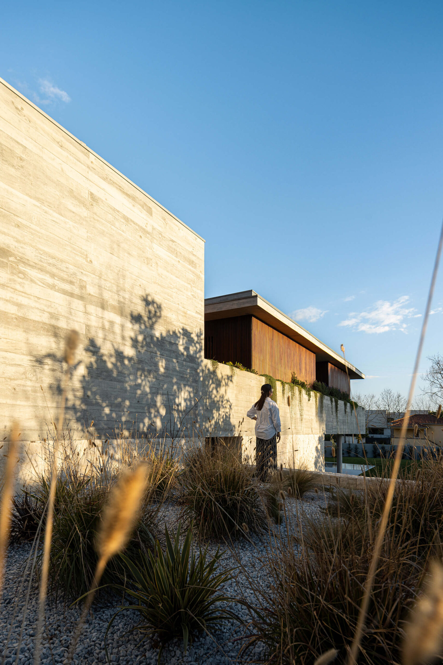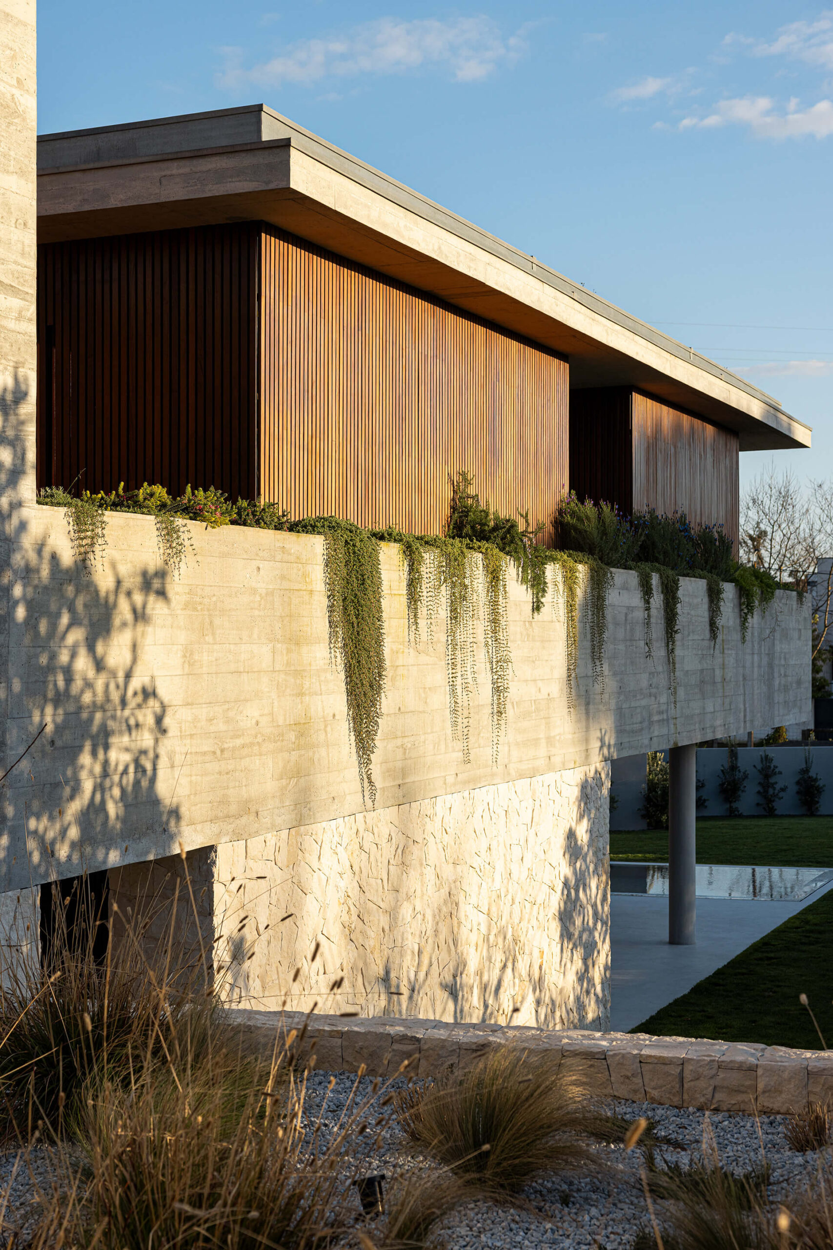 Συνολικά, το έργο διακρίνεται για την αρμονική σύνθεση όγκων, τη φροντισμένη επιλογή φυσικών υλικών και την ολιστική ένταξή του στο τοπίο. Ο συνδυασμός εμφανούς σκυροδέματος, ξύλου και πέτρας προσδίδει στο κτίριο στιβαρότητα, αλλά και εκλεπτυσμένη αισθητική, δημιουργώντας μια κατοικία που ισορροπεί μεταξύ λειτουργικότητας, άνεσης και αισθητικής ποιότητας.
