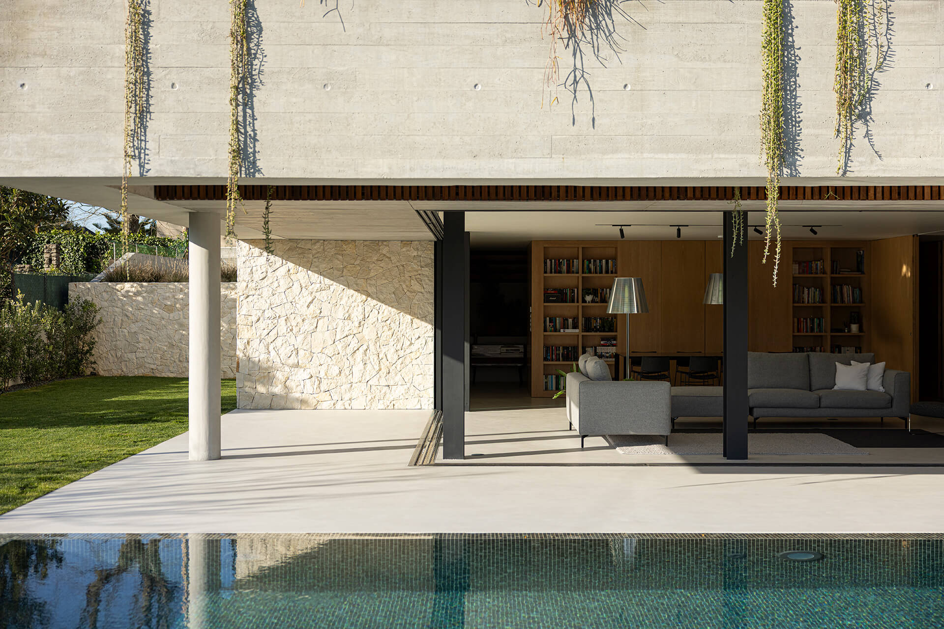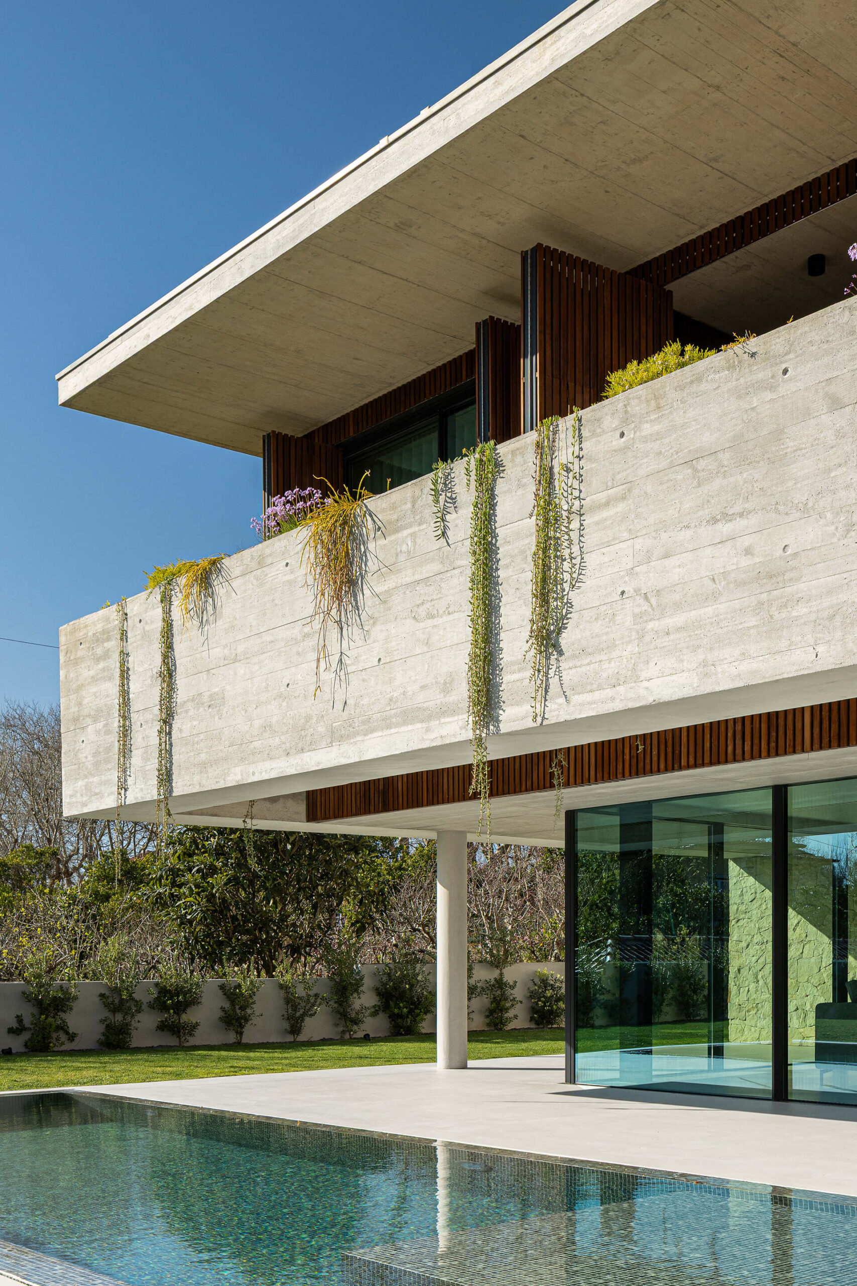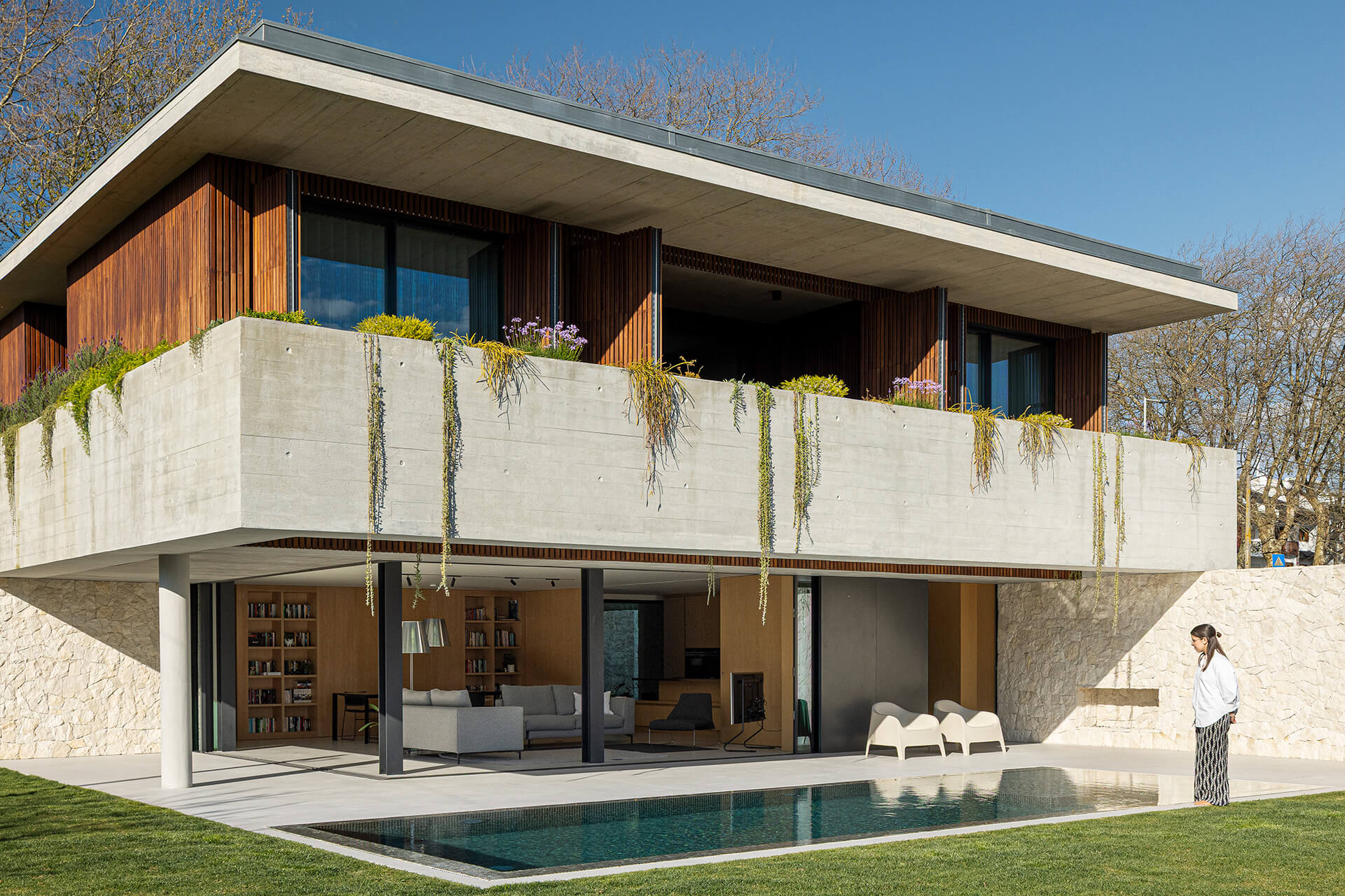 Συνολικά, το έργο διακρίνεται για την αρμονική σύνθεση όγκων, τη φροντισμένη επιλογή φυσικών υλικών και την ολιστική ένταξή του στο τοπίο. Ο συνδυασμός εμφανούς σκυροδέματος, ξύλου και πέτρας προσδίδει στο κτίριο στιβαρότητα, αλλά και εκλεπτυσμένη αισθητική, δημιουργώντας μια κατοικία που ισορροπεί μεταξύ λειτουργικότητας, άνεσης και αισθητικής ποιότητας.