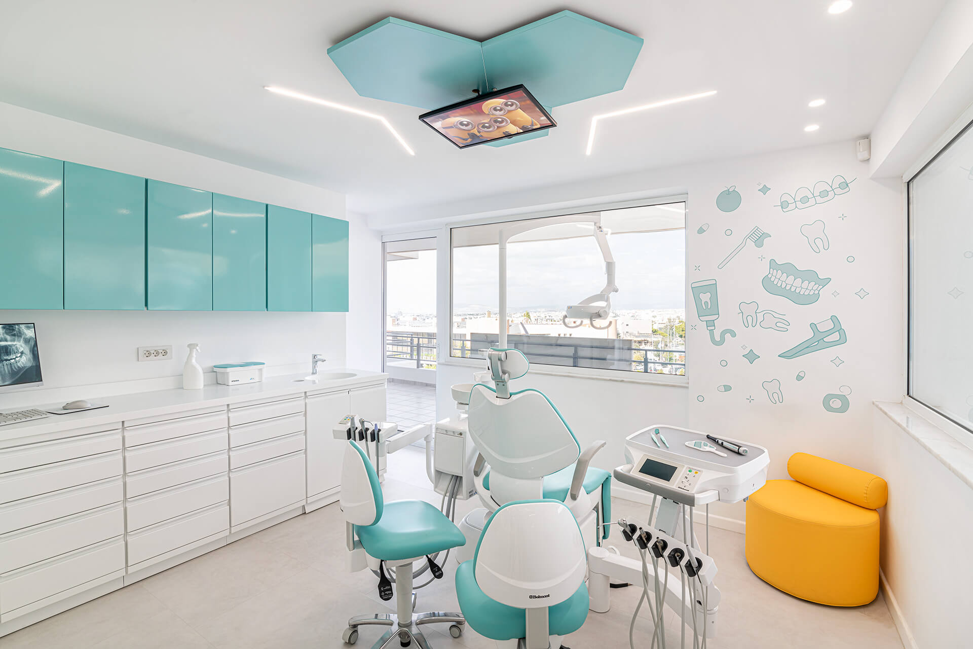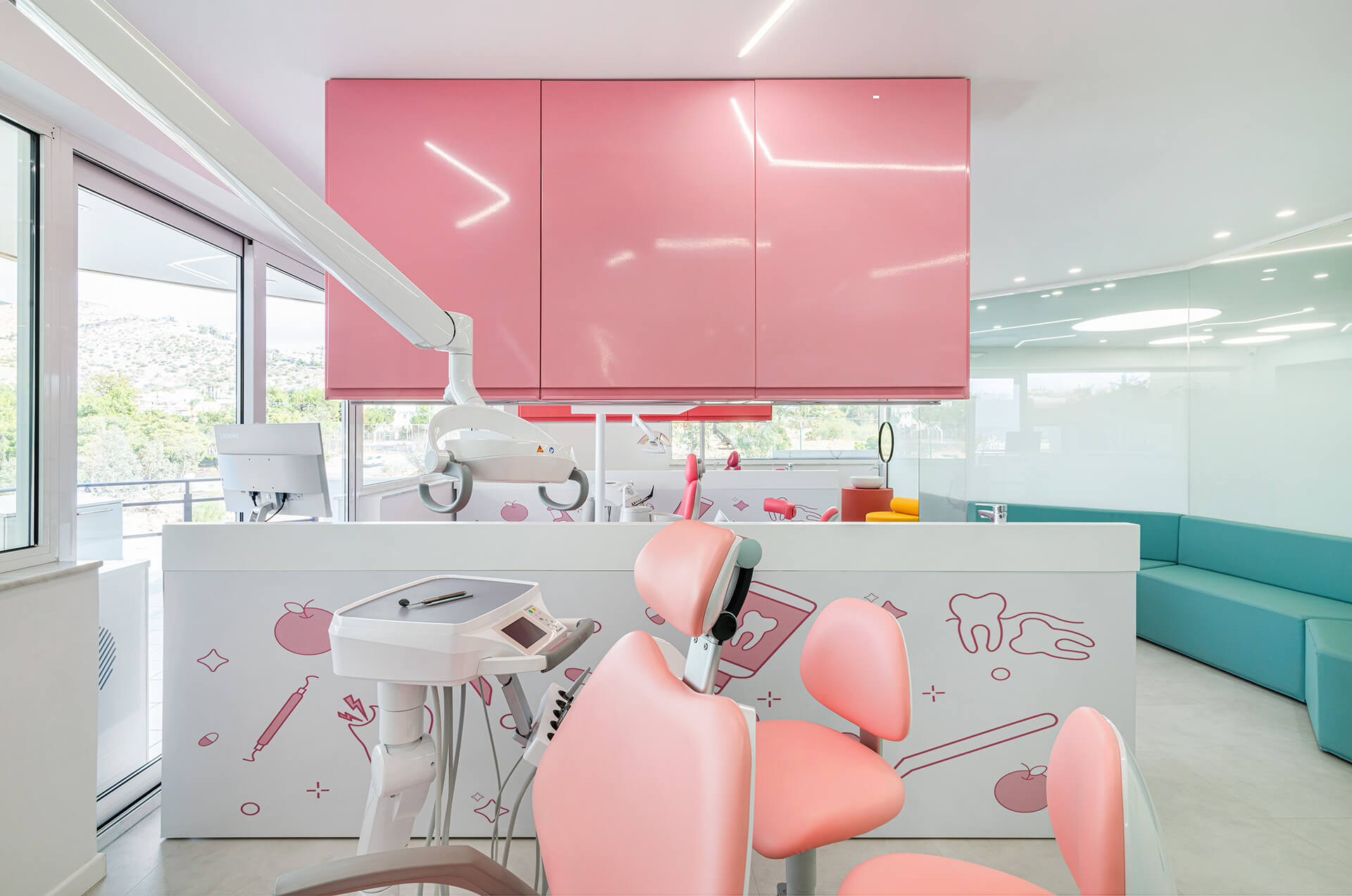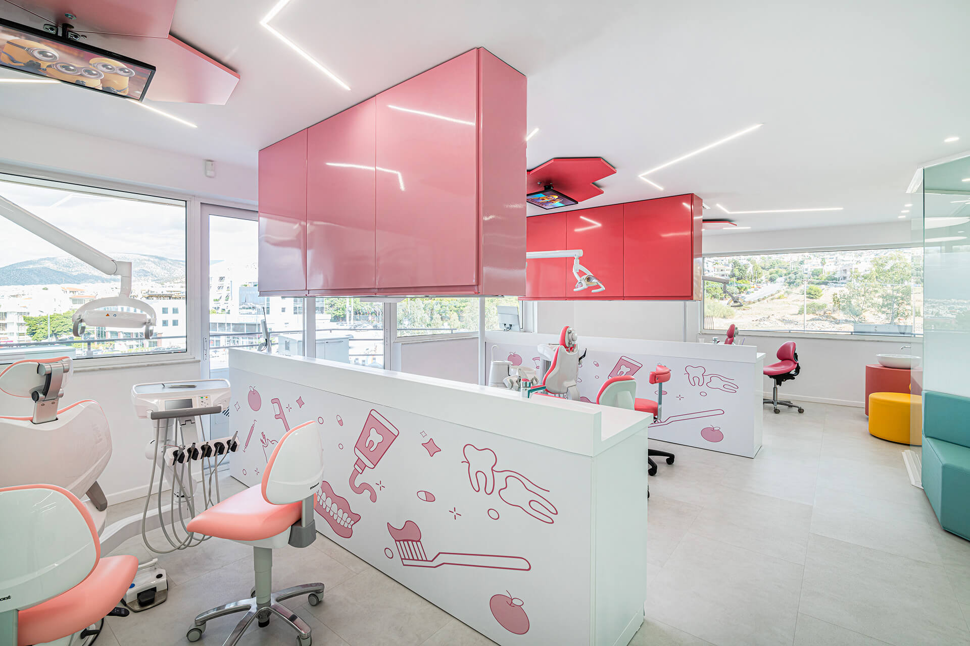 Η παιδοδοντιατρική κλινική Happy Tooth εκτείνεται σε χώρο 230m2 στον 3ο όροφο ενός κτιρίου γραφείων στη Βούλα.