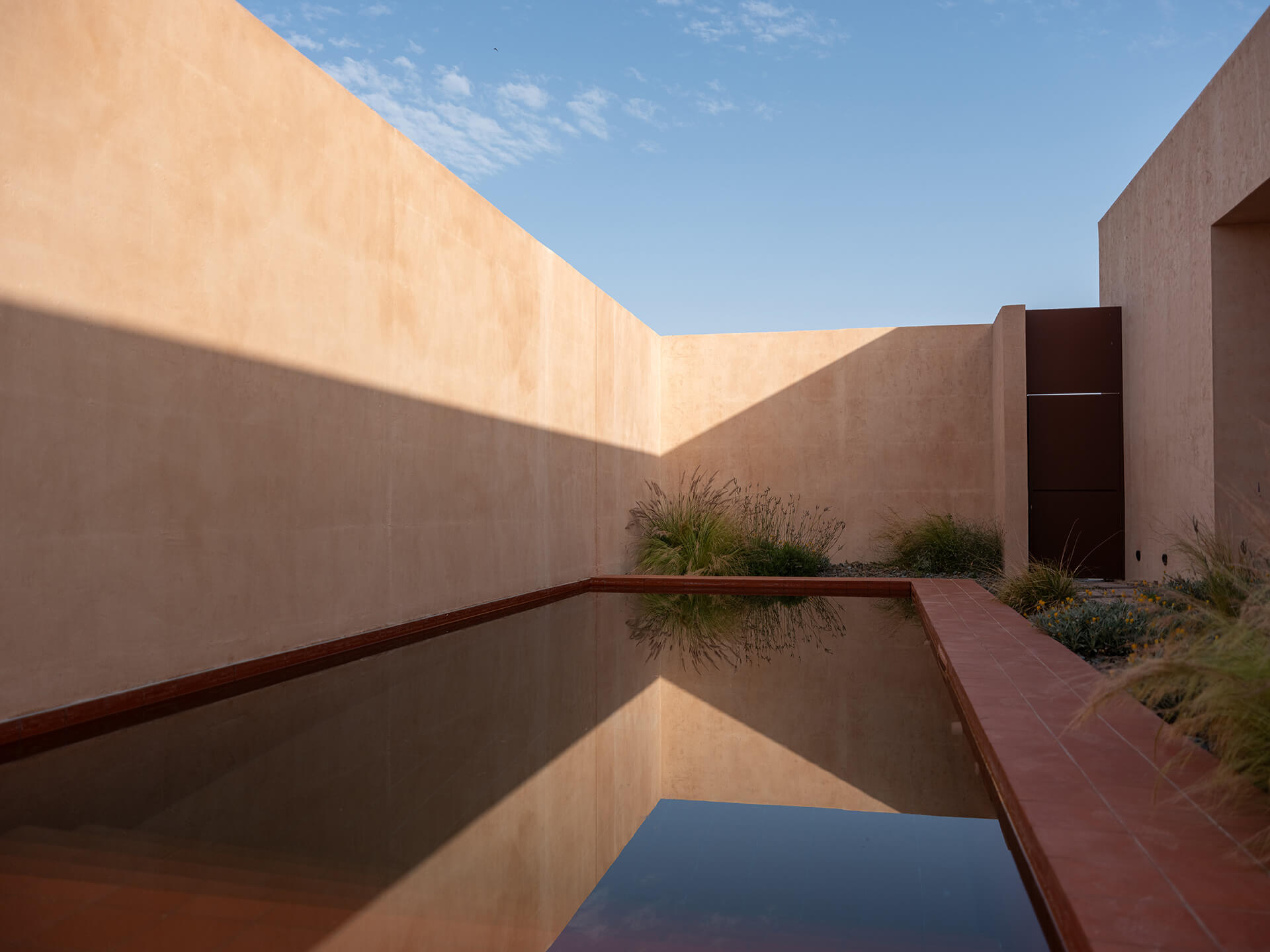 Το έργο ξεκινά από τη γη, νοημένο ως ένα σπίτι βαθιά ριζωμένο στον τόπο του. Το όραμα ήταν να επανερμηνευθεί η μεσογειακή τυπολογία της αυλής μέσα από ένα σύγχρονο πρίσμα, αγκαλιάζοντας το τοπίο ενώ ταυτόχρονα πλαισιώνονται χώροι ιδιωτικότητας και συνάθροισης. Πρόκειται για μια κατοικία όπου οι παραδοσιακές μορφές συναντούν τον μινιμαλισμό, και όπου η στιβαρότητα των μονολιθικών τοίχων αποπνέει προστασία και γαλήνη.
