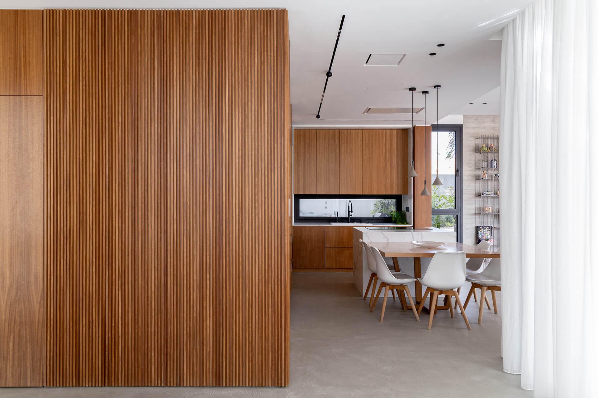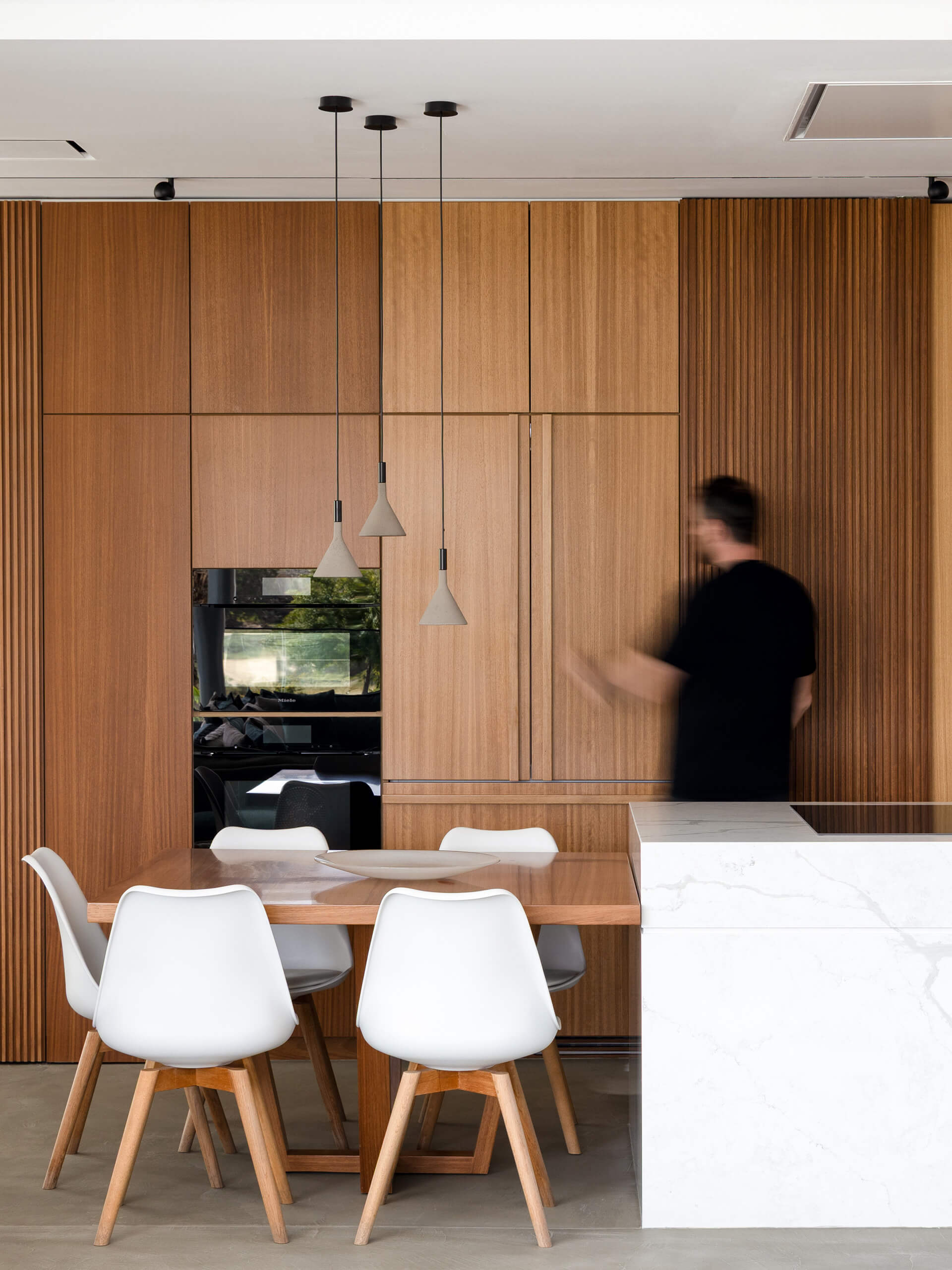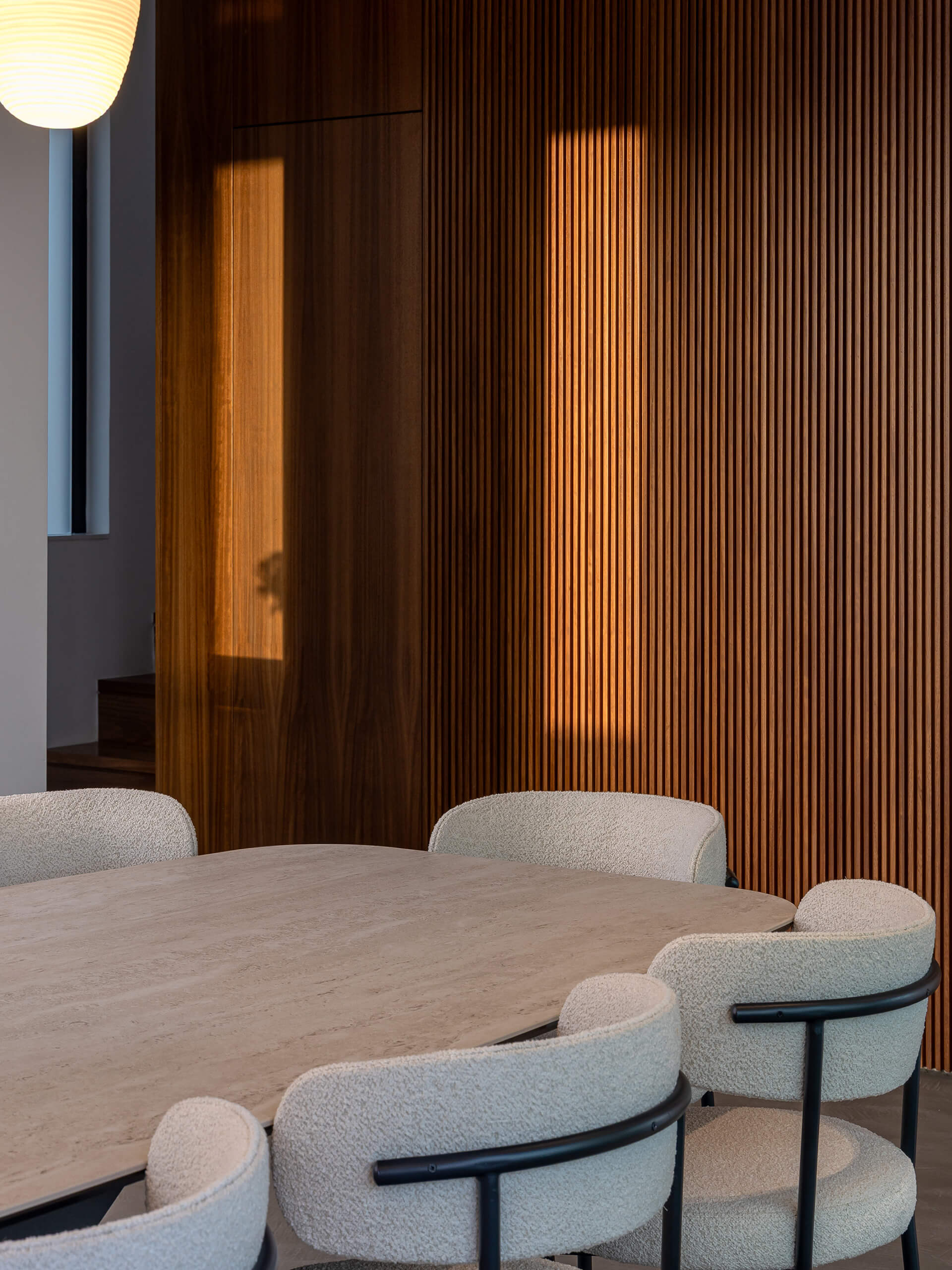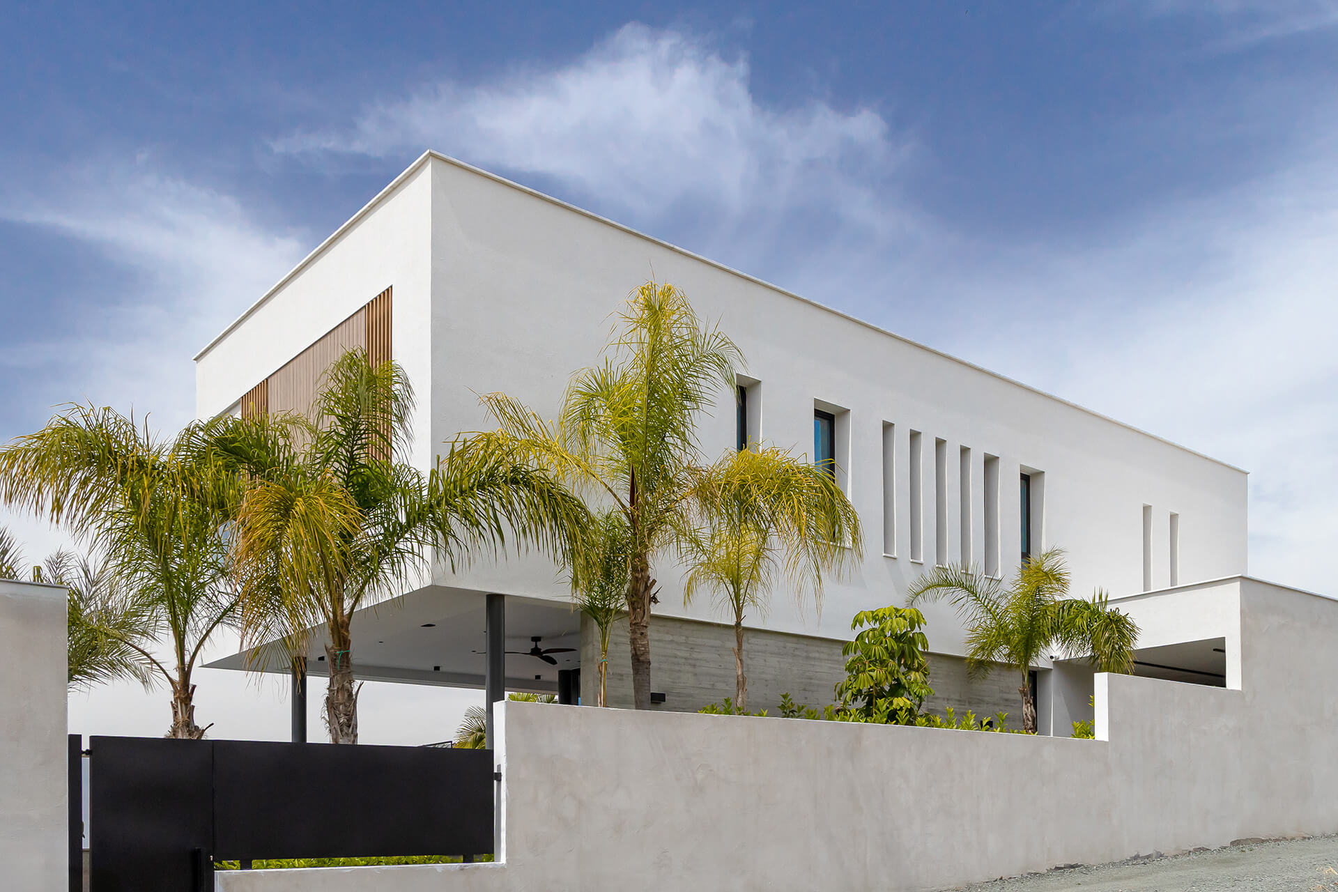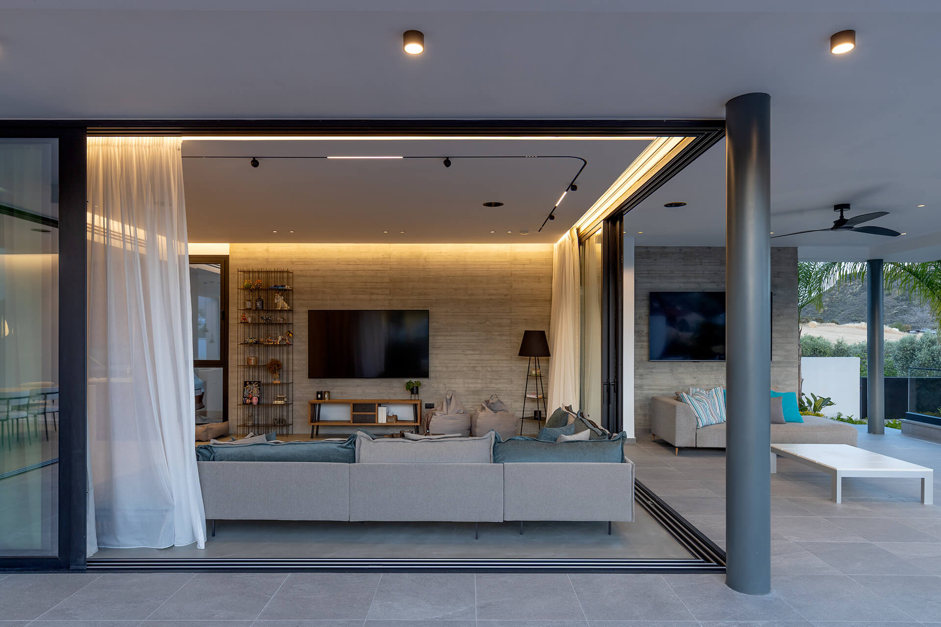Η επιλογή των υλικών – σκυρόδεμα, πέτρα και ξύλο – αντικατοπτρίζει τη σχέση του κτιρίου με το φυσικό περιβάλλον, συνδυάζοντας ανθεκτικότητα και απλότητα. Η κατοικία αποτυπώνει τη σύγχρονη κυπριακή αρχιτεκτονική μέσα από τη σύνθεση καθαρών όγκων και την αίσθηση γαλήνης που προσφέρει.
