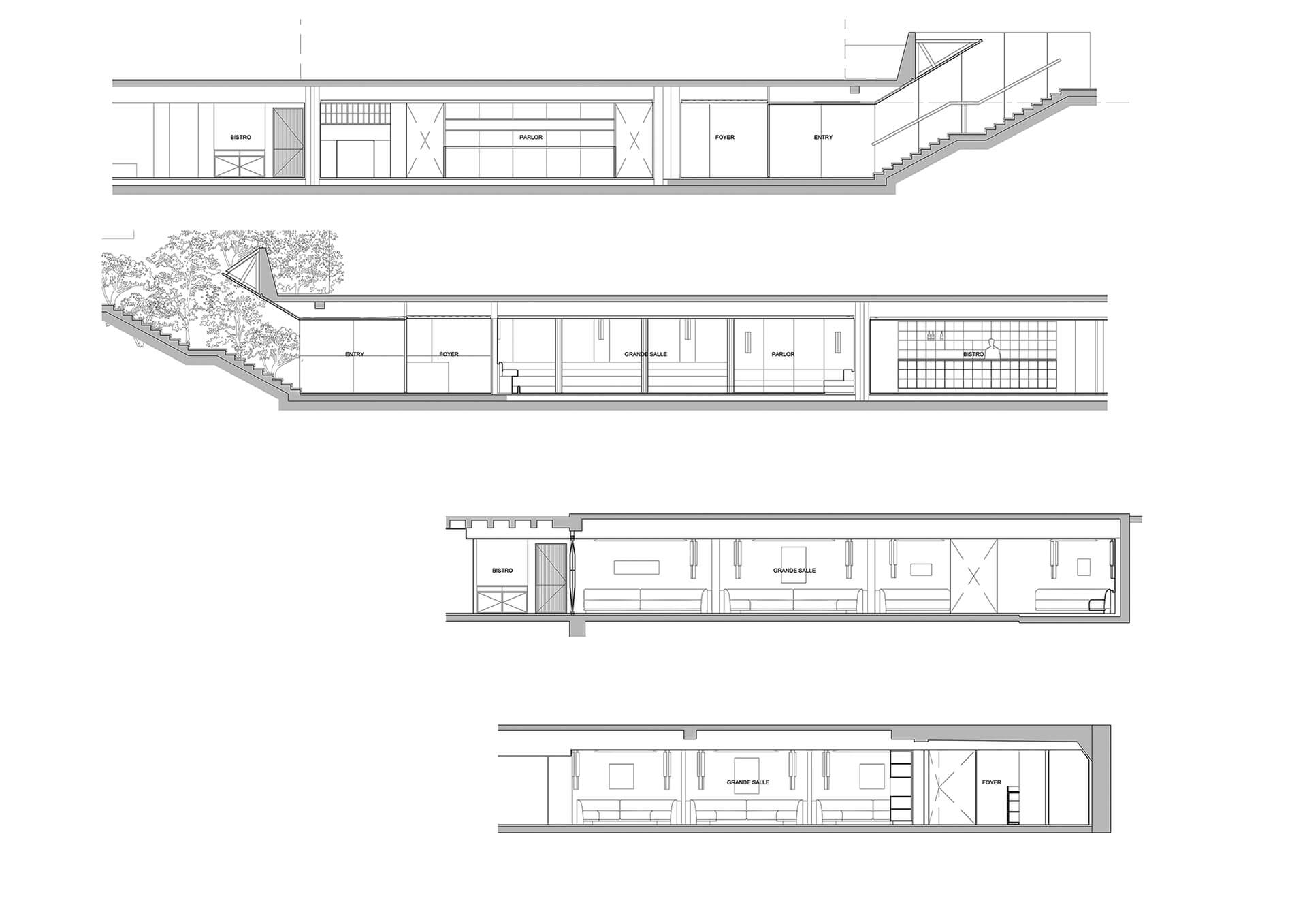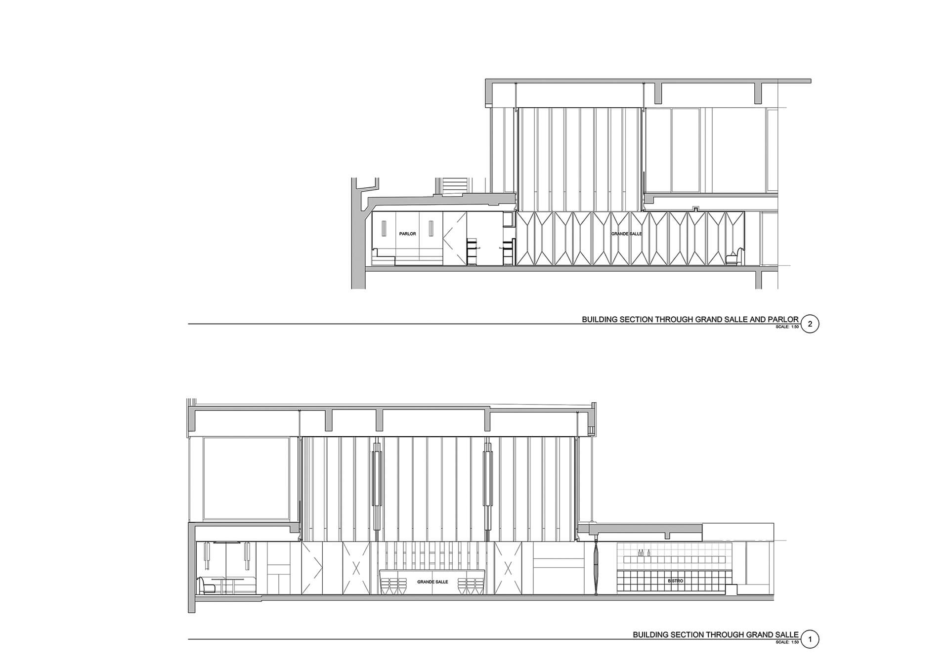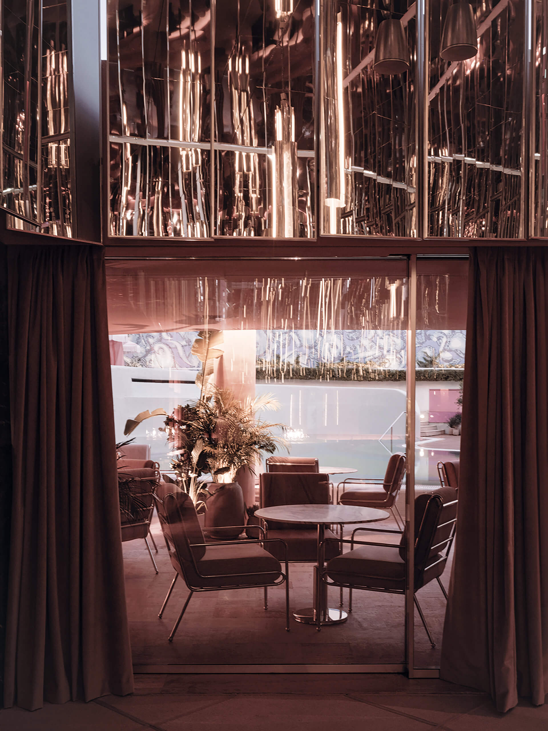 Το δωμάτιο, σαν να ήταν ορυχείο, έχει περίκλειστη ατμόσφαιρα, συνδυάζοντας τα ακατέργαστα υλικά με τις εκλεπτυσμένες λεπτομέρειες. Σε συνέχεια του Parlor, δύο διάδρομοι οριοθετούν τη Grande Salle, έναν χώρο lounge, cocktail bar και εστιατορίου με χαρακτηριστικό του το καλειδοσκοπικό αίθριο με καθρέφτες ύψους 7m. Custom κρεμαστά φωτιστικά με ανακλαστήρες δημιουργούν το εφέ μιας ντισκομπάλας που έχει γυρίσει την εξωτερική της επιφάνεια στο εσωτερικό. Καμπύλες banquettes δημιουργούν σχήματα boomerang που μοιάζουν να αιωρούνται πάνω στο ανοιχτόχρωμο ροζ χαλί από κοκοφοίνικα.