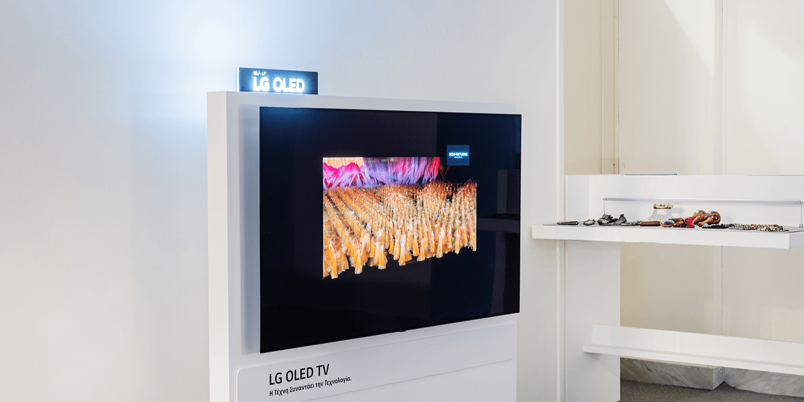 Στη Δημοτική Πινακοθήκη του Δήμου Πειραιά ο επισκέπτης περιηγείται σε τρεις διαφορετικούς χώρους και σε περισσότερες από 12 ενότητες, οι οποίες λειτουργούν συνδυαστικά με τα ψηφιακά έργα. Αυτή την ανεπανάληπτη εμπειρία έρχονται να κορυφώσουν οι έξι οθόνες 65” LG OLED, που βρίσκονται στο χώρο και προβάλλουν στιγμιότυπα από το «ταξίδι» του Σωτήρη Δανέζη, δίνοντας του πνοή μέσα από την κορυφαία ευκρίνεια που προσφέρει η τεχνολογία των αυτό-φωτιζόμενων pixels. Η πιστότητα χρωμάτων 100% που διαθέτουν οι OLED οθόνες, αποτυπώνει με ακρίβεια τα χρώματα της πρωτότυπης εικόνας, έτσι, ό,τι παρακολουθείτε φαίνεται ακριβώς όπως το οραματίστηκε ο δημιουργός, αποδίδοντας εξαιρετικό ρεαλισμό στο περιεχόμενο και συμβάλλοντας στην μοναδικότητα της εμπειρίας του επισκέπτη. Η LG OLED με την απεριόριστη αντίθεση, το βαθύτερο μαύρο, τα πλουσιότερα χρώματα και τη ρεαλιστική ποιότητα εικόνας, αποδίδει ένα αποτέλεσμα που ‘τραβάει’ τα βλέμματα, ενώ το νέο ανασχεδιασμένο πάνελ βελτιώνει τα κύματα του φωτός και έχει ως αποτέλεσμα καλύτερη εμπειρία θέασης των επισκεπτών. Η LG OLED 65’’ ξεχωρίζει επίσης για τον απίστευτα λεπτό σχεδιασμό και την καινοτομία απίστευτου βεληνεκούς, αποδίδοντας τέλεια κάθε λεπτομέρεια των φωτογραφιών.