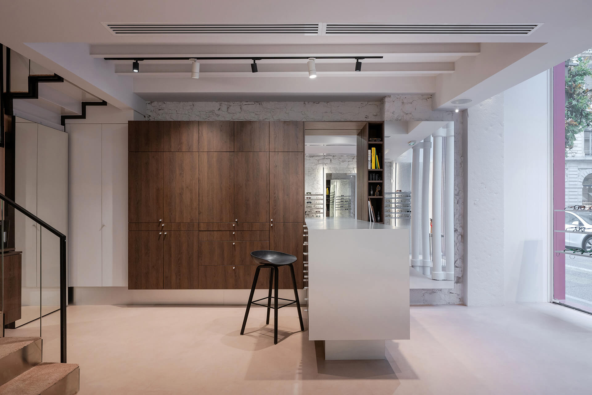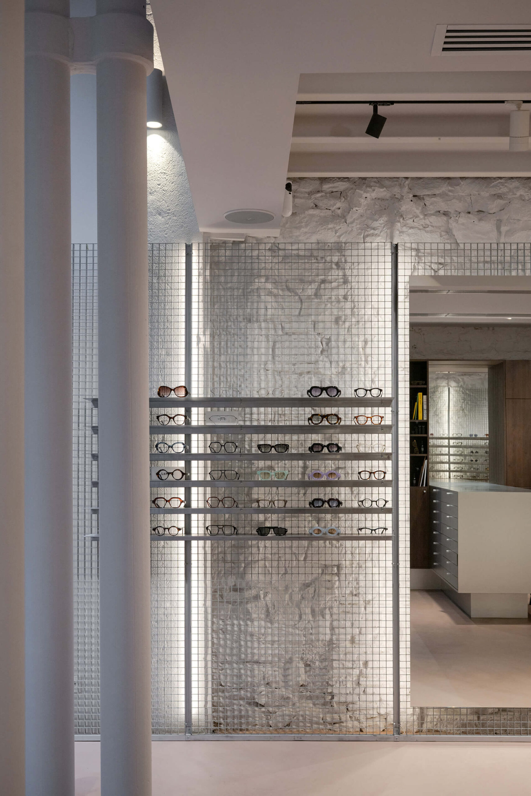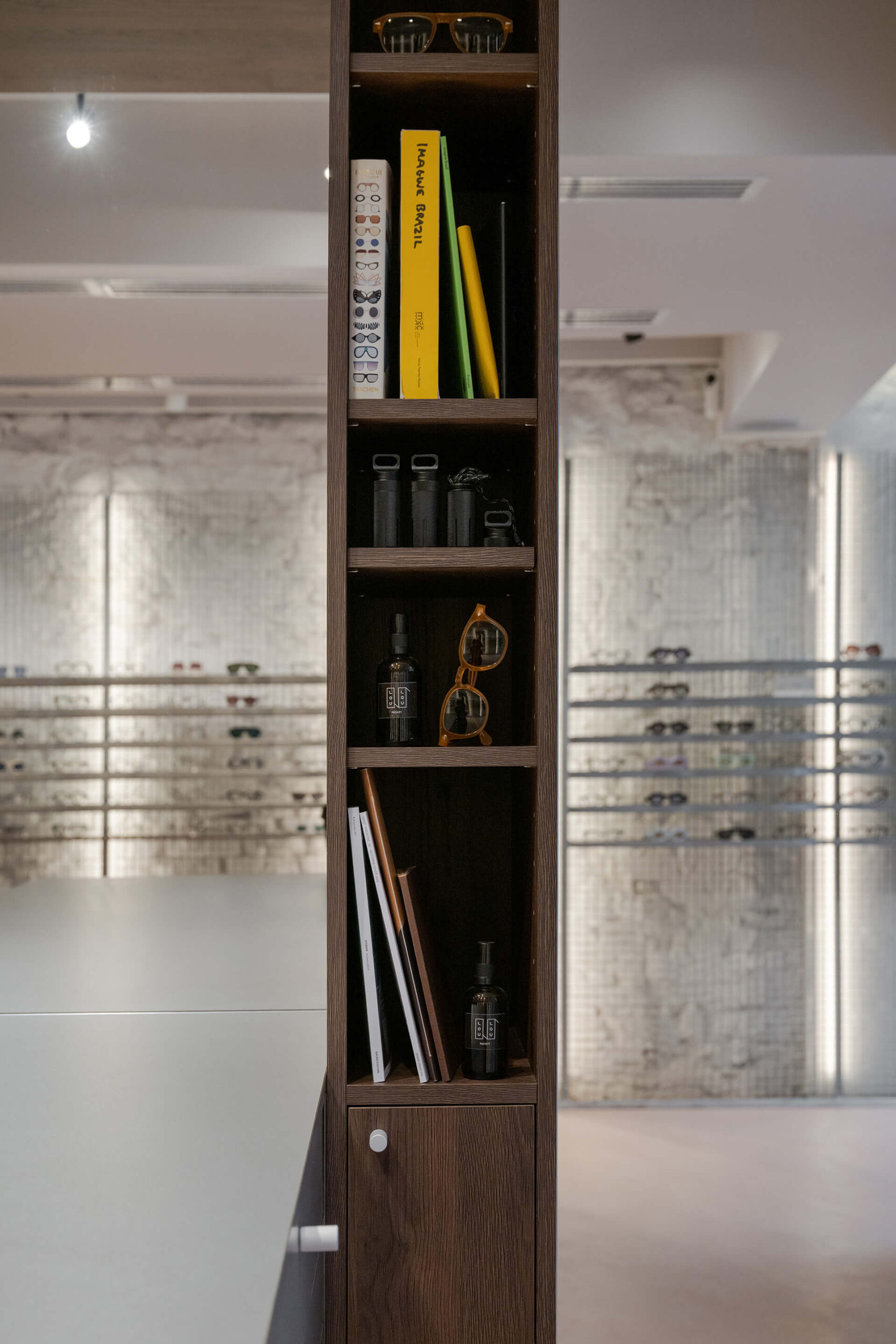 Η επεξεργασία των λεπτομερειών ενισχύει τη δέσμευση του brand στη δεξιοτεχνία, μεταφράζοντας τις ποιότητες των συλλογών γυαλιών σε χωρική έκφραση. Μέσα από αυτή τη συνθήκη, η boutique υπερβαίνει τον καθαρά εμπορικό της χαρακτήρα, μετασχηματιζόμενη σε μια αρχιτεκτονική έκφραση επιμελημένου design και αισθητηριακής εμπειρίας.