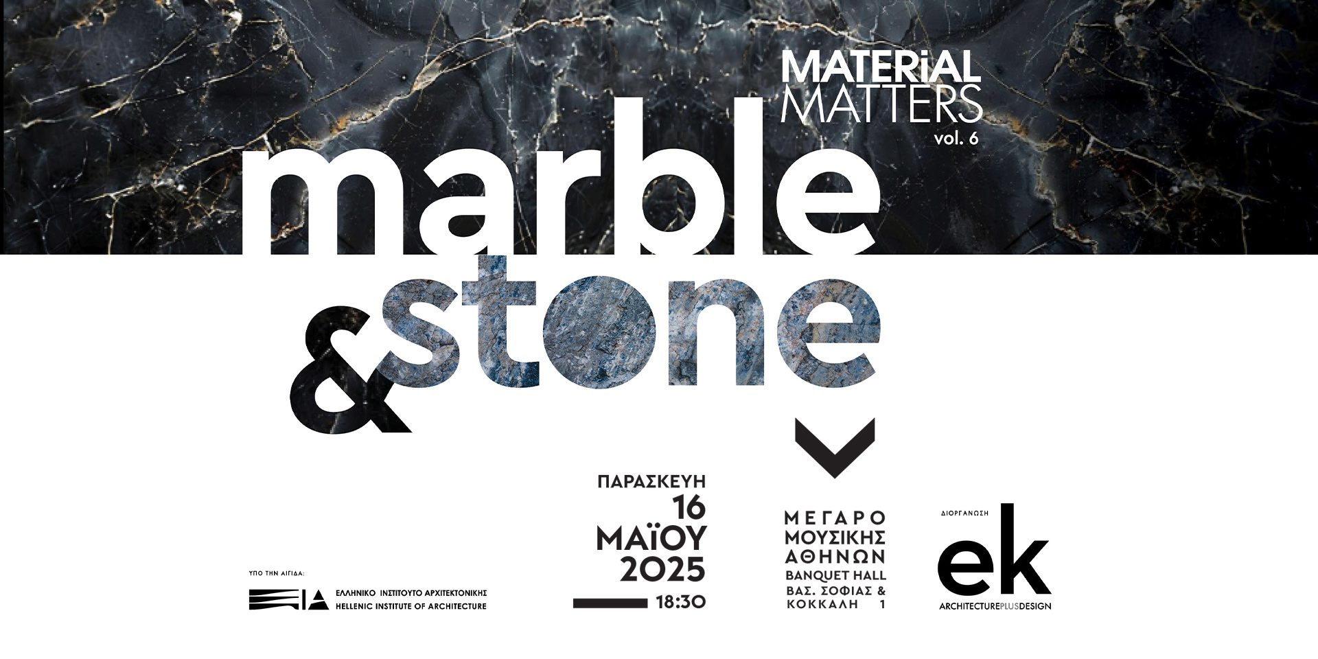 Η 6η αρχιτεκτονική εκδήλωση της σειράς “Material Matters”, σε διοργάνωση του ek magazine, θα πραγματοποιηθεί την Παρασκευή 16 Μαΐου, στο Μέγαρο Μουσικής Αθηνών, αίθουσα banquet.