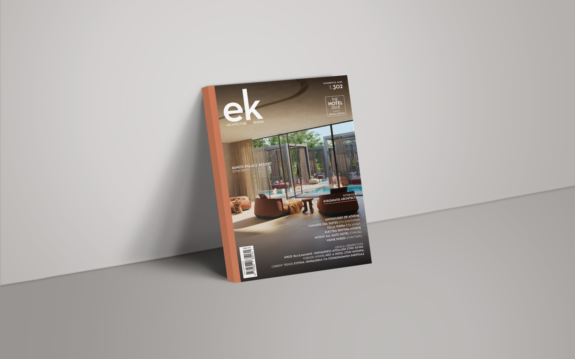Μέσα από αποκλειστικά αφιερώματα, συνεντεύξεις και θεωρητικά κείμενα, το ek magazine 302 παρουσιάζει μια επιλεγμένη συλλογή από ξενοδοχειακά και τουριστικά έργα αρχιτεκτονικής που επαναπροσδιορίζουν τη φιλοξενία μέσα από τον σχεδιασμό, τη βιωσιμότητα και τη συναισθηματική εμπειρία.