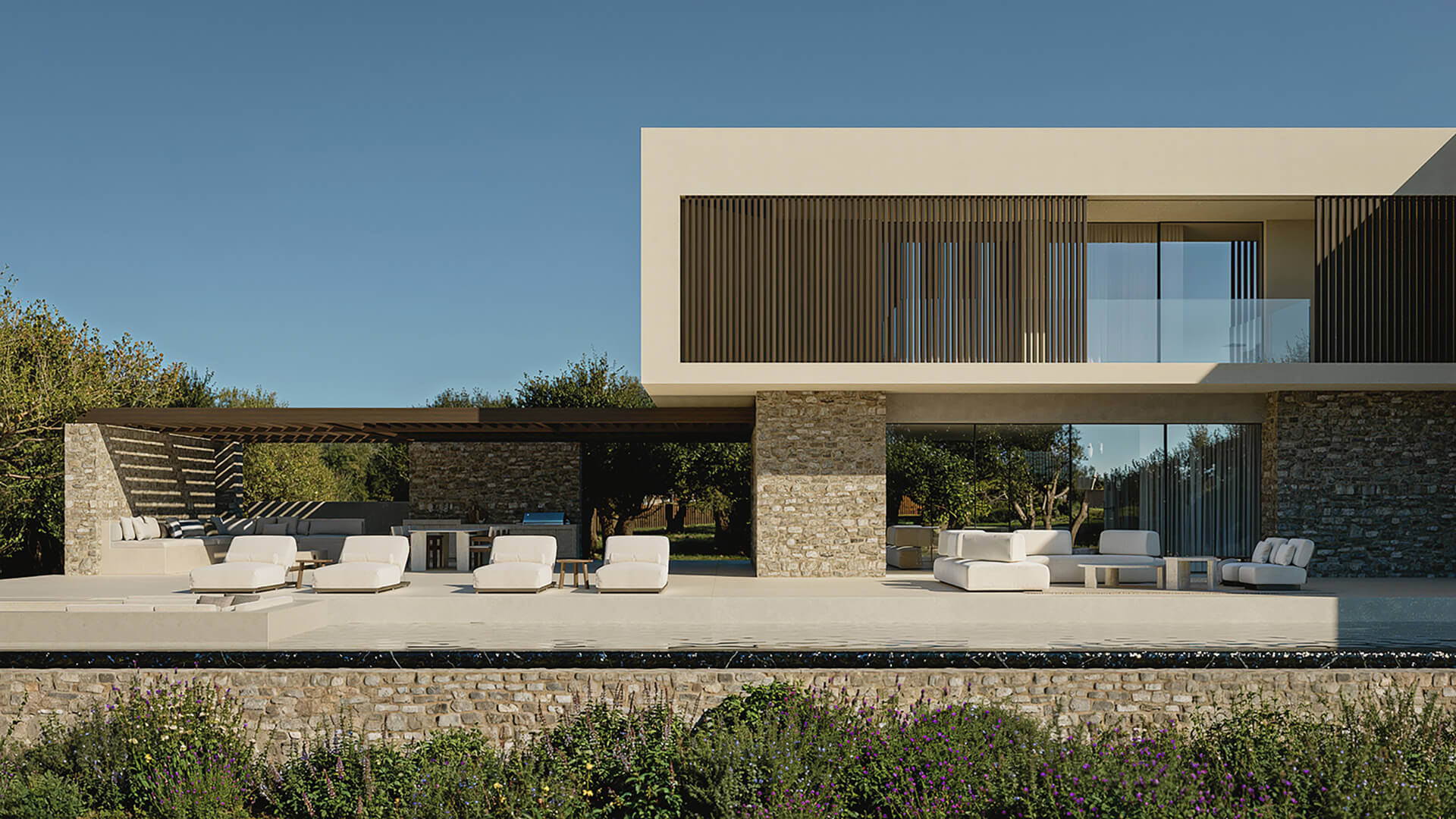 Μέσα από την ανθρώπινη κλίμακα και τα φυσικά υλικά, διατυπώνεται μια σύγχρονη εκδοχή πολυτέλειας: απλή, ουσιαστική και βαθιά συνδεδεμένη με το περιβάλλον και την εμπειρία του τοπίου.