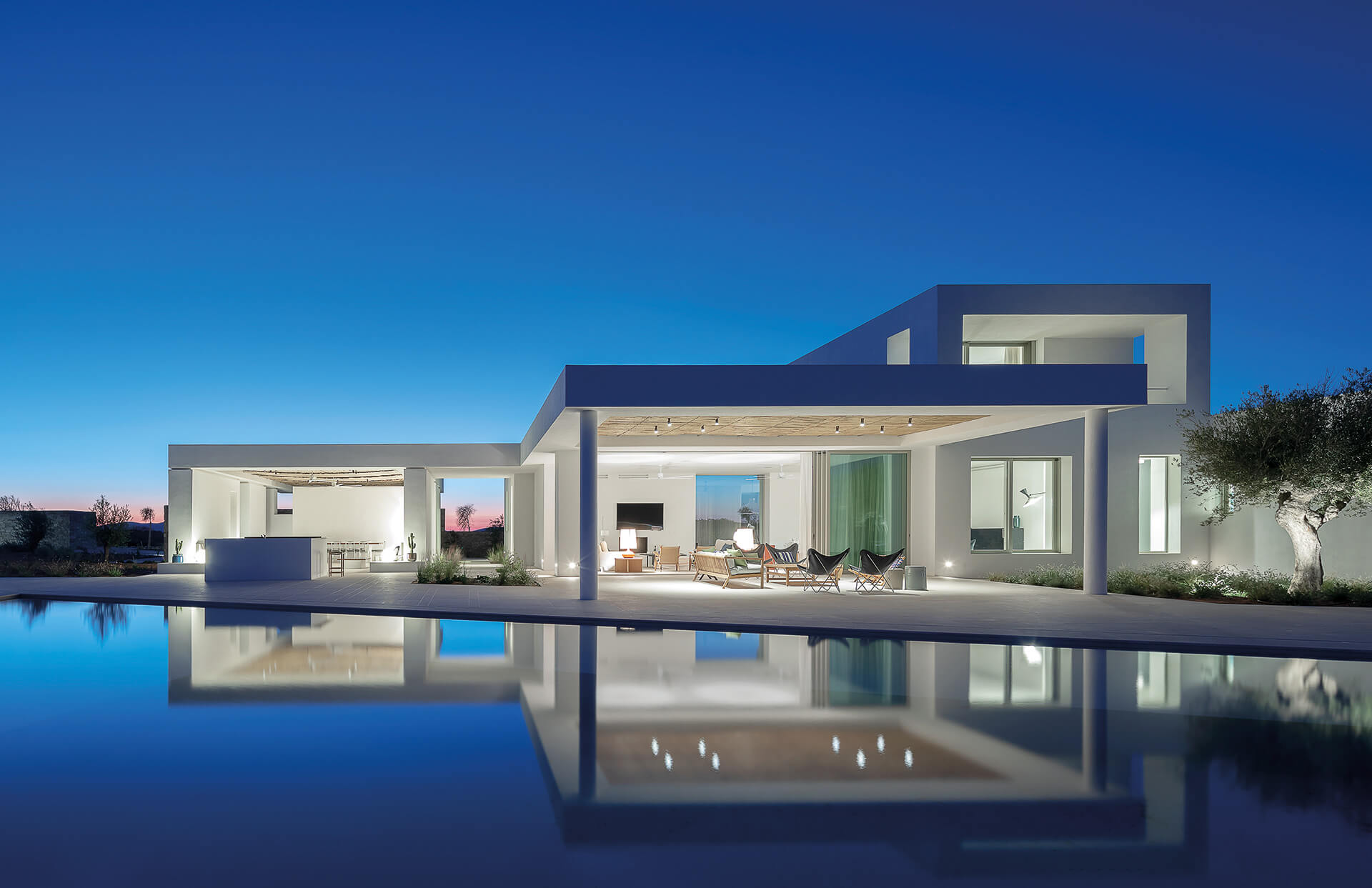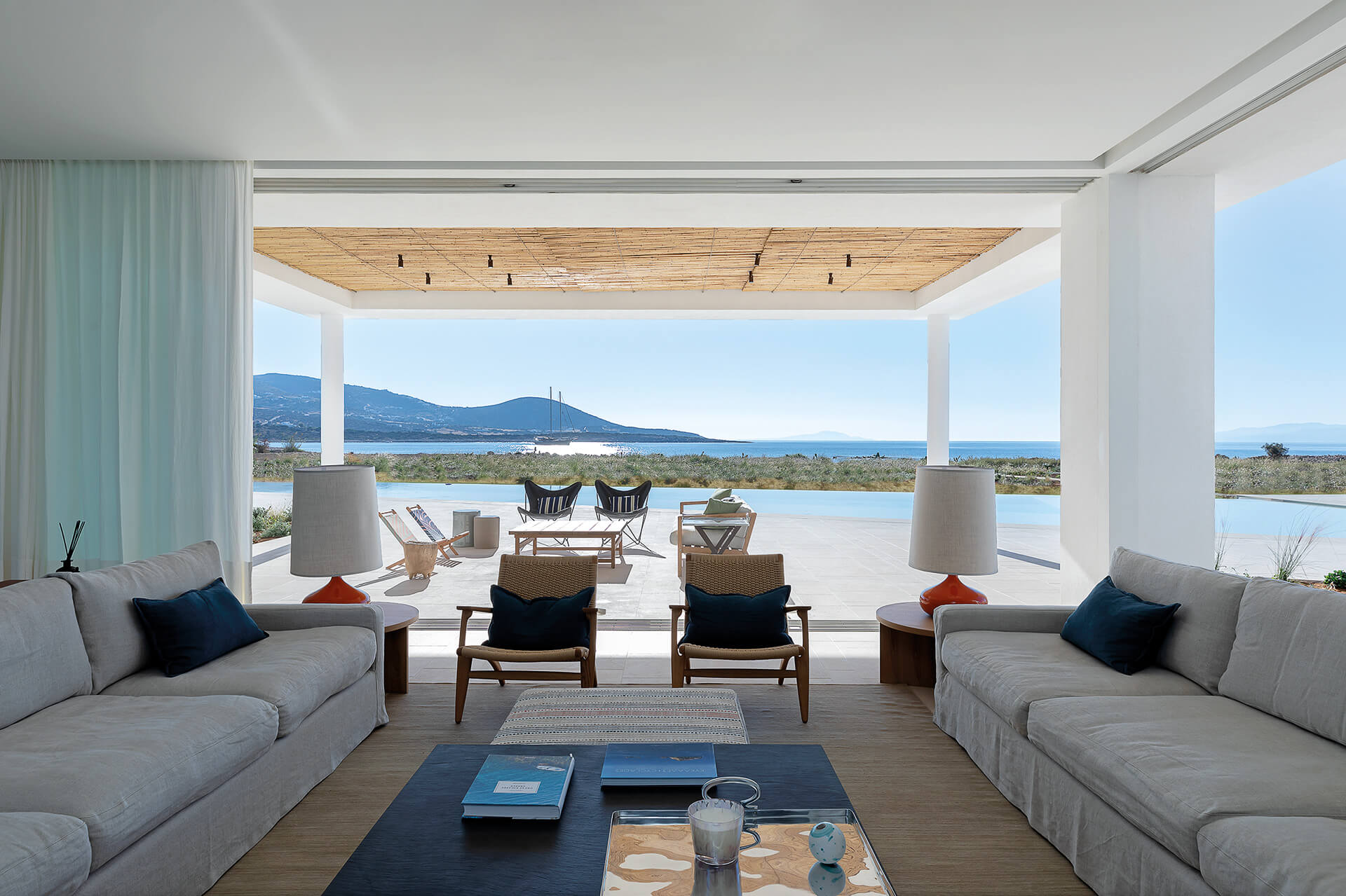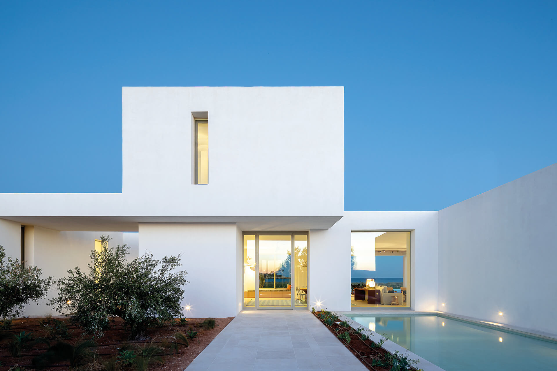 Η αρχιτεκτονική, παρούσα στο ιδανικό αυτό τοπίο, δημιουργεί μια κατοικία ξεκούρασης και απόλαυσης. Η αναφορά στο ελληνικό καλοκαίρι είναι εμφανής στον τρόπο με τον οποίο οι χώροι δεν είναι μονοσήμαντα ορισμένοι αλλά διαρρέουν προς το περιβάλλον και τη θάλασσα. Η κατοικία είναι μια ερμηνεία, ένας δανεισμός στοιχείων από τις αρχές του μοντερνισμού -που τόσο σχετίζεται με την κυκλαδική αρχιτεκτονική- με στόχο την ενοποίηση και την απαλοιφή των ορίων μεταξύ του φυσικού και του κατοικημένου χώρου.