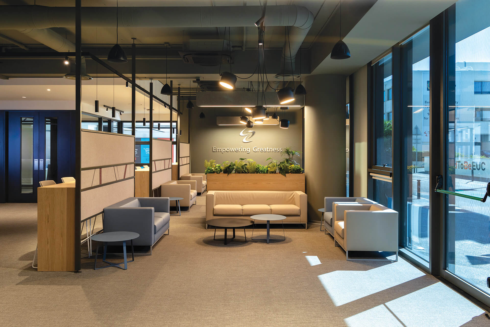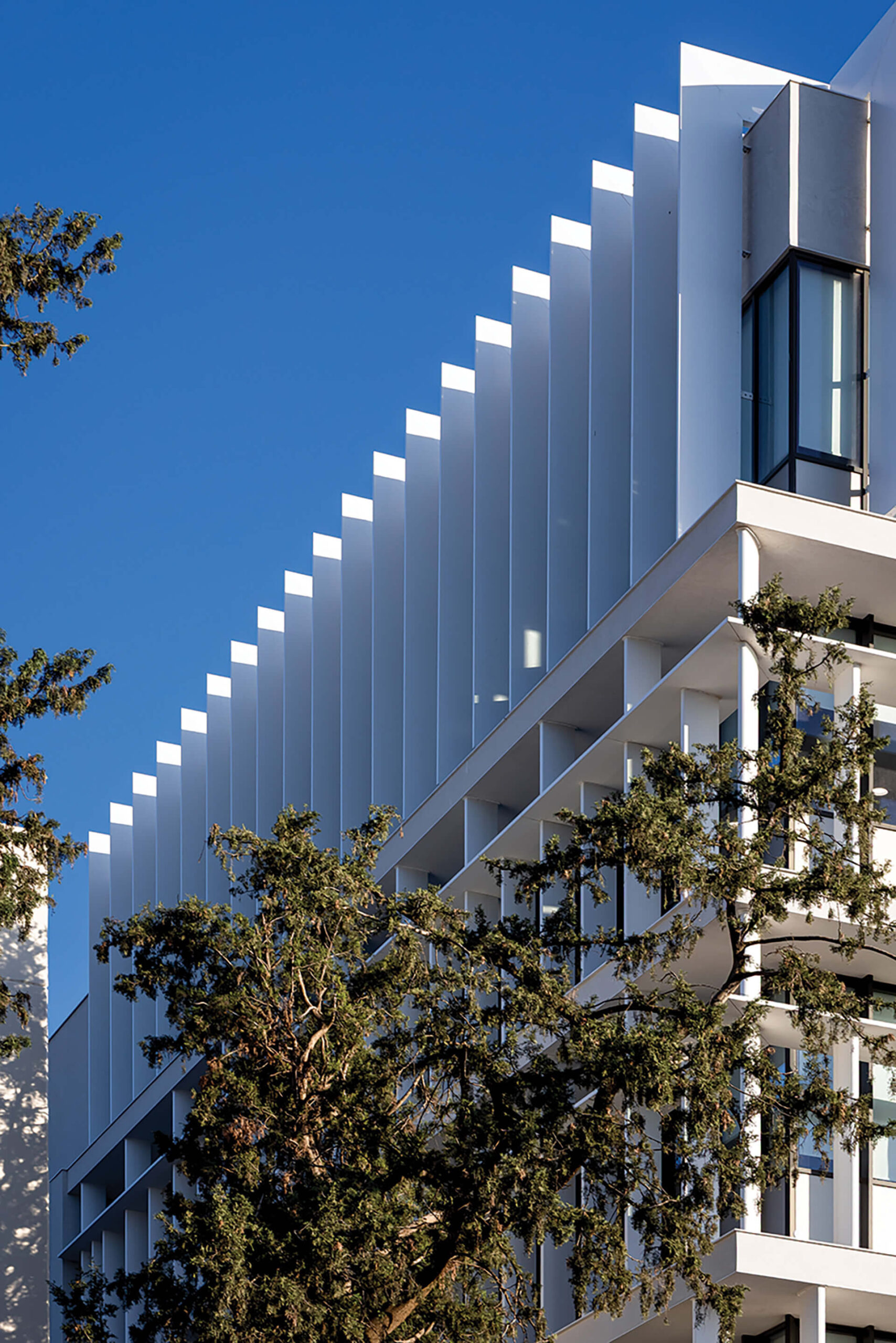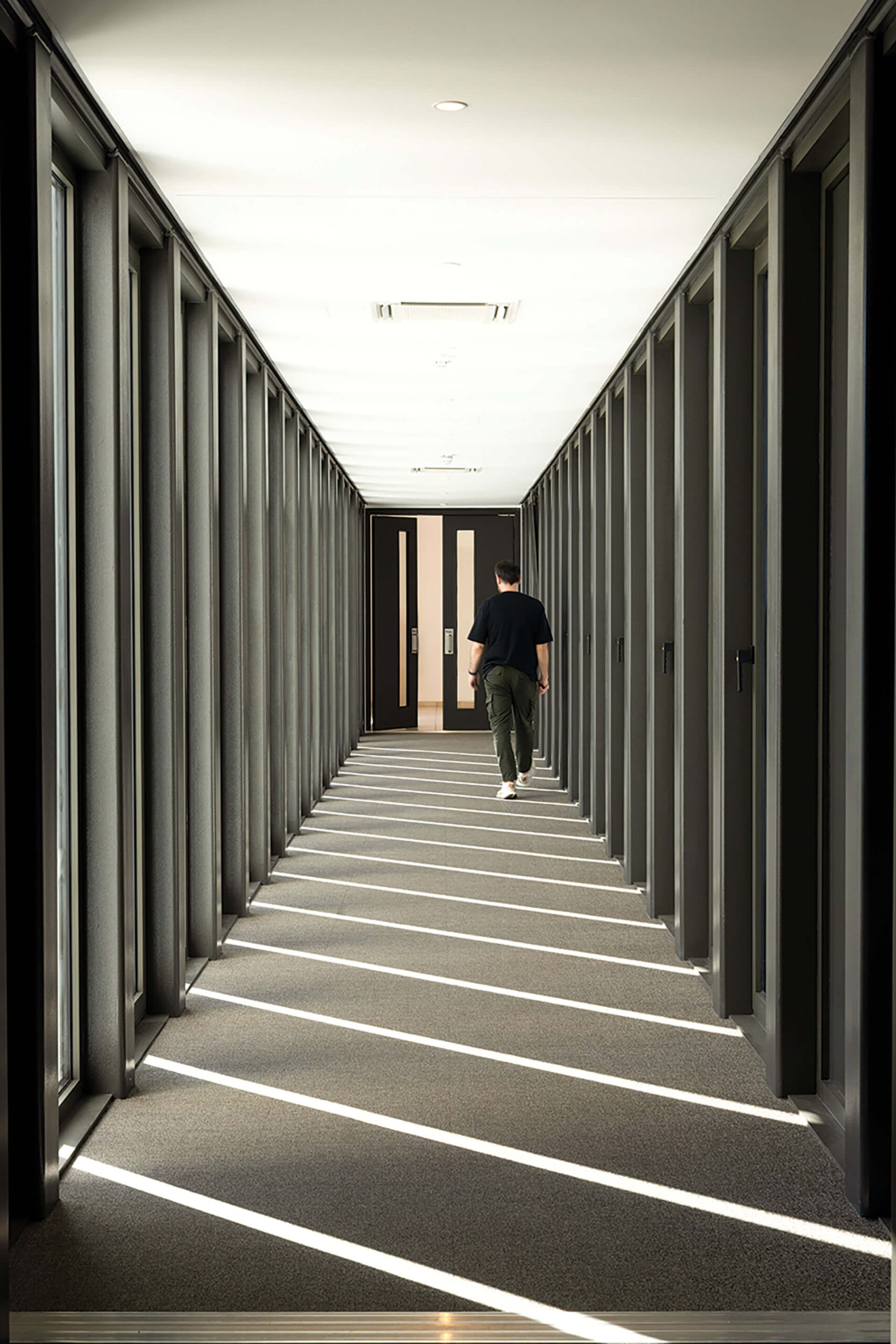 The objective, therefore, was for the extension to become the new architectural expression of the university and to shape its modernised identity, while retaining the fundamental lines of the existing buildings’ morphology. This connection was achieved through the design of the facades using customised aluminium frames that reference the earlier morphology of the openings, while simultaneously providing the necessary protection against constantly shifting climatic conditions. The specially designed profiles shade the interior without restricting views, creating an engaging interplay between closed and open, solid and transparent. Within the broader modernisation of the university facilities, both the facades and the existing buildings were renovated and upgraded. In parallel, a smart building management system was installed to optimise energy performance and operational efficiency.