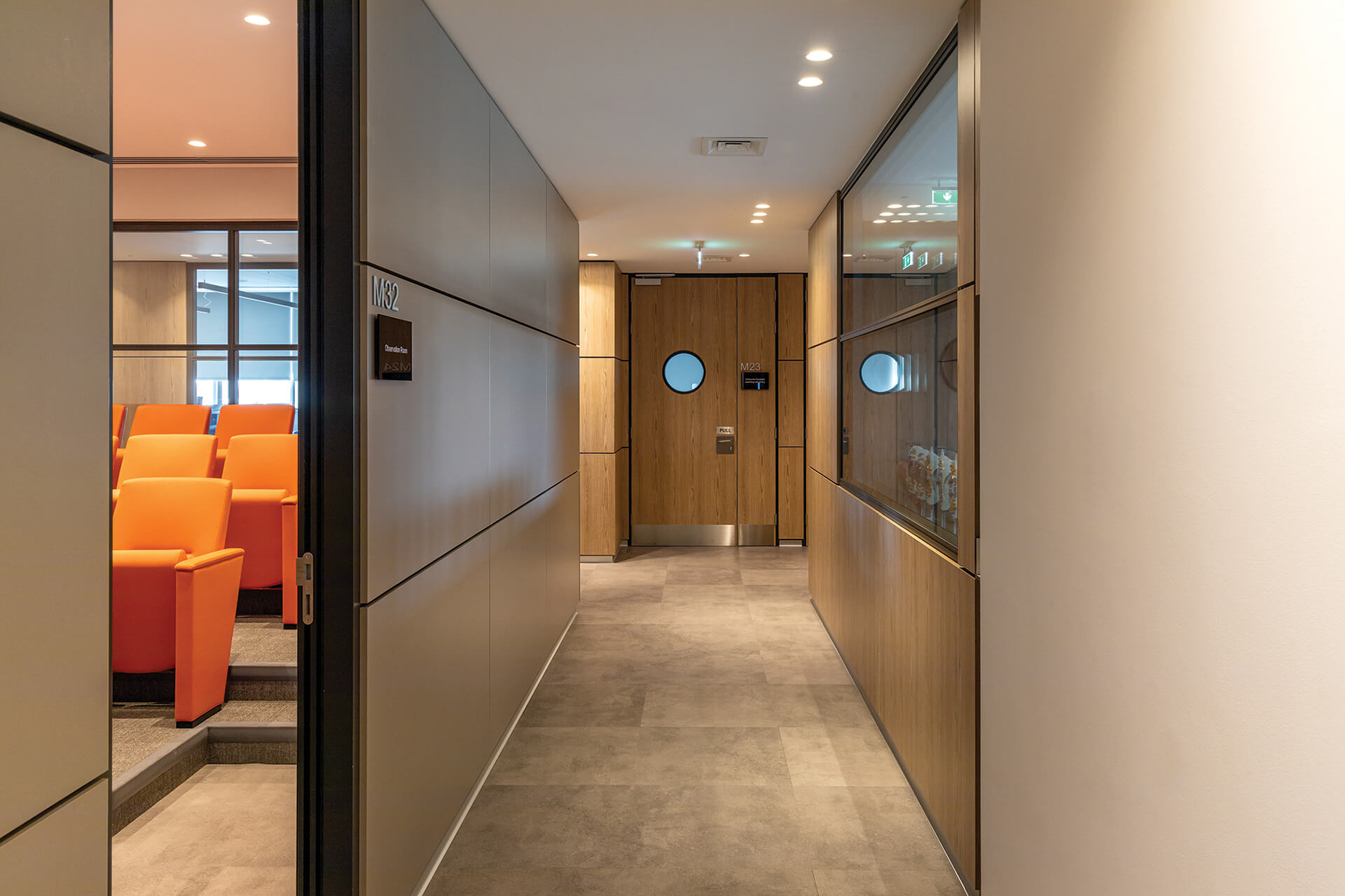 Given the building’s significant institutional role within the university campus, the architecture was required to establish a connection with the existing facilities while preserving the distinctiveness of its character. The project site lies along one of Nicosia’s main traffic arteries (Agiou Prokopiou Avenue), an urban environment that remains largely under development. As such, the building seeks to respond with a restrained yet substantial presence within this context of extended distances and high-speed movement. The architecture of the area presents certain characteristics, which the project was called upon to respect.