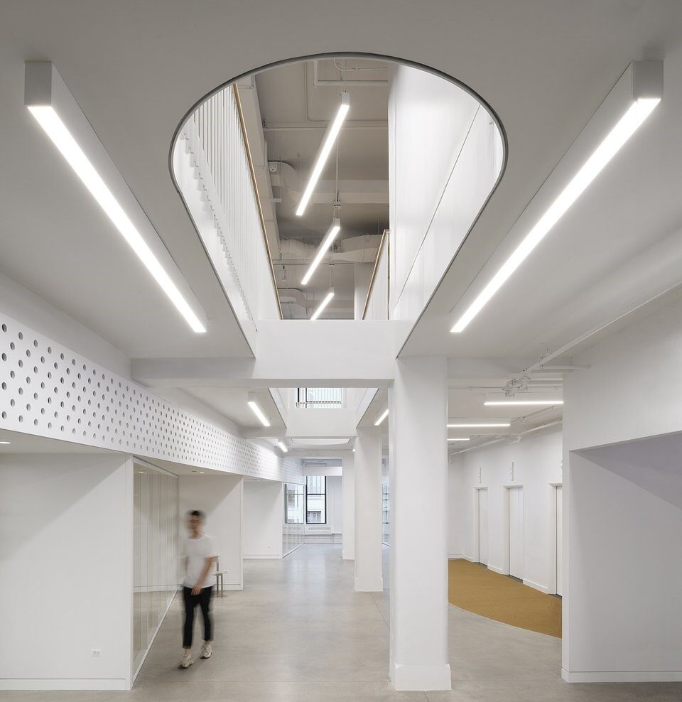 The new design reconfigures the school’s existing main and special collections library on the fifth and sixth floor and exposes the building’s original steel frame structure. A narrow 20cm by 2.5m atrium connects the two levels, establishing a visual and physical connection of the two floors. A new multi-use space named “Corridor+” is constructed to create better circulation and access to the library, while also providing semi-private reading nooks, becoming a flexible public space for meetings, study sessions, exhibitions, and performances.