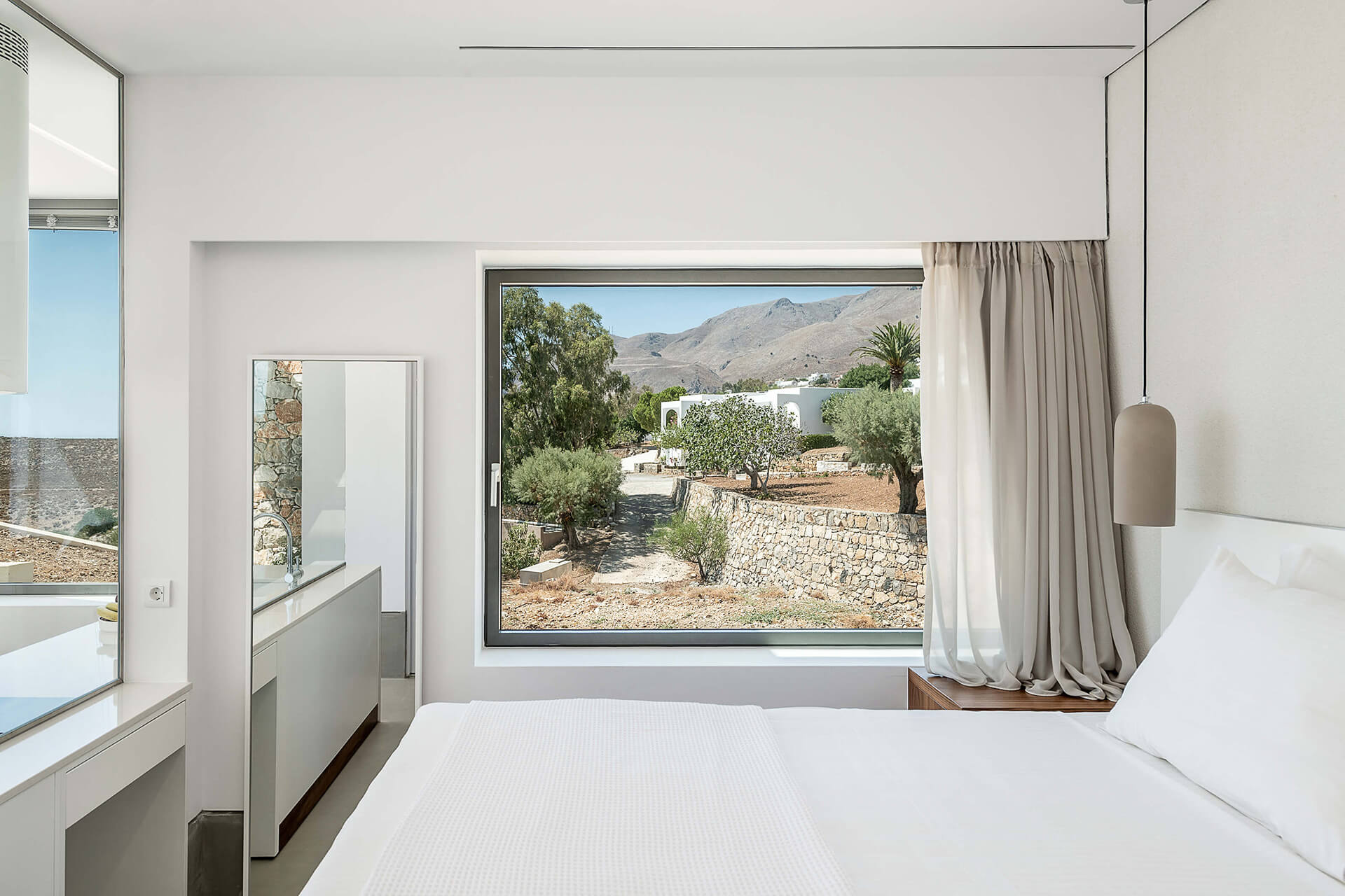 Inspired by the distinctive topography and the warm yet rugged climate of southern Crete, the design seeks harmony with its surroundings. Four suites, each 45m² with a private outdoor area, are seamlessly embedded into the landscape, offering both privacy and open visual connections to the natural surroundings.