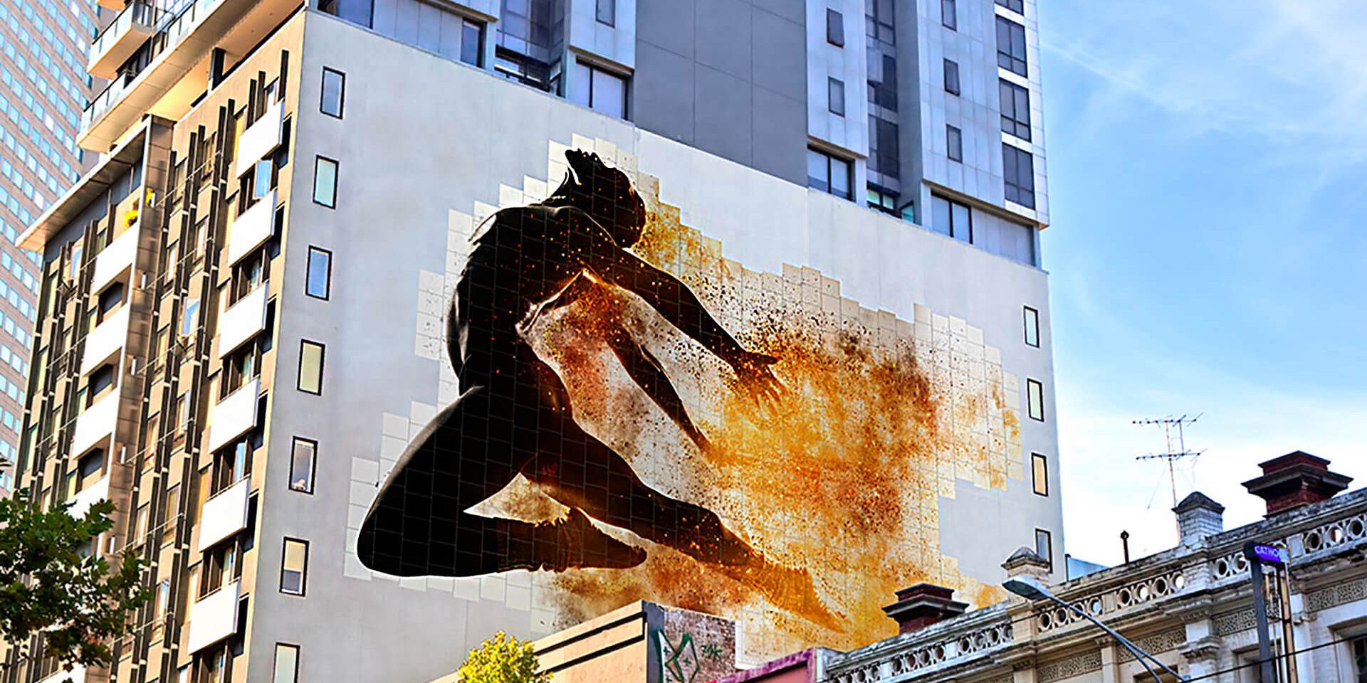 The large-scale wall art is made of individual 30x30cm and 0.7mm thick high-endurance, light-weight aluminium panels, covered with unique colourful graphics and topped with a protective coating, which come together to assemble the finished piece.