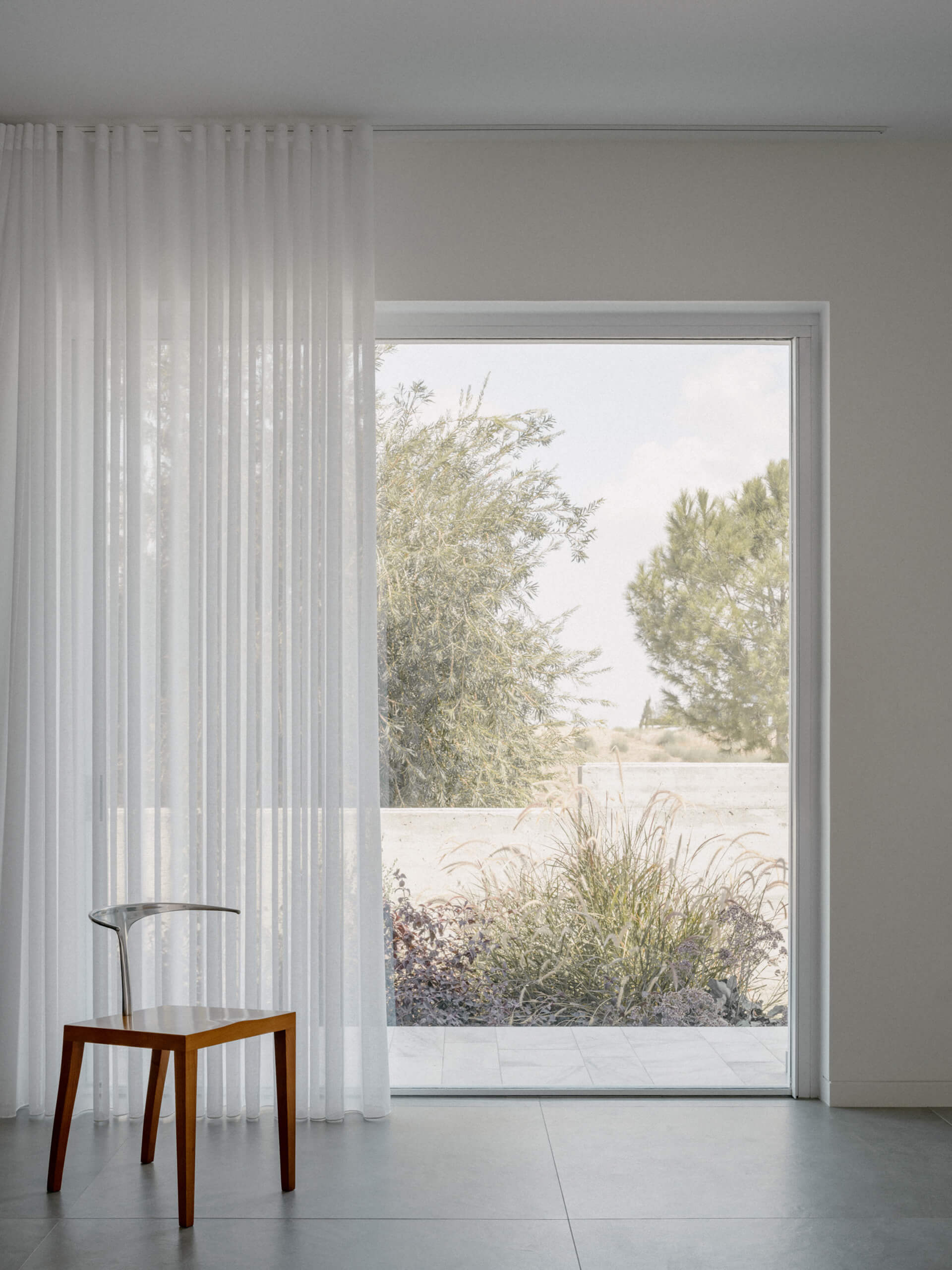The garden is planted exclusively with Mediterranean vegetation, ensuring minimal maintenance while enhancing perspectives and reinforcing the relationship between interior and exterior spaces.