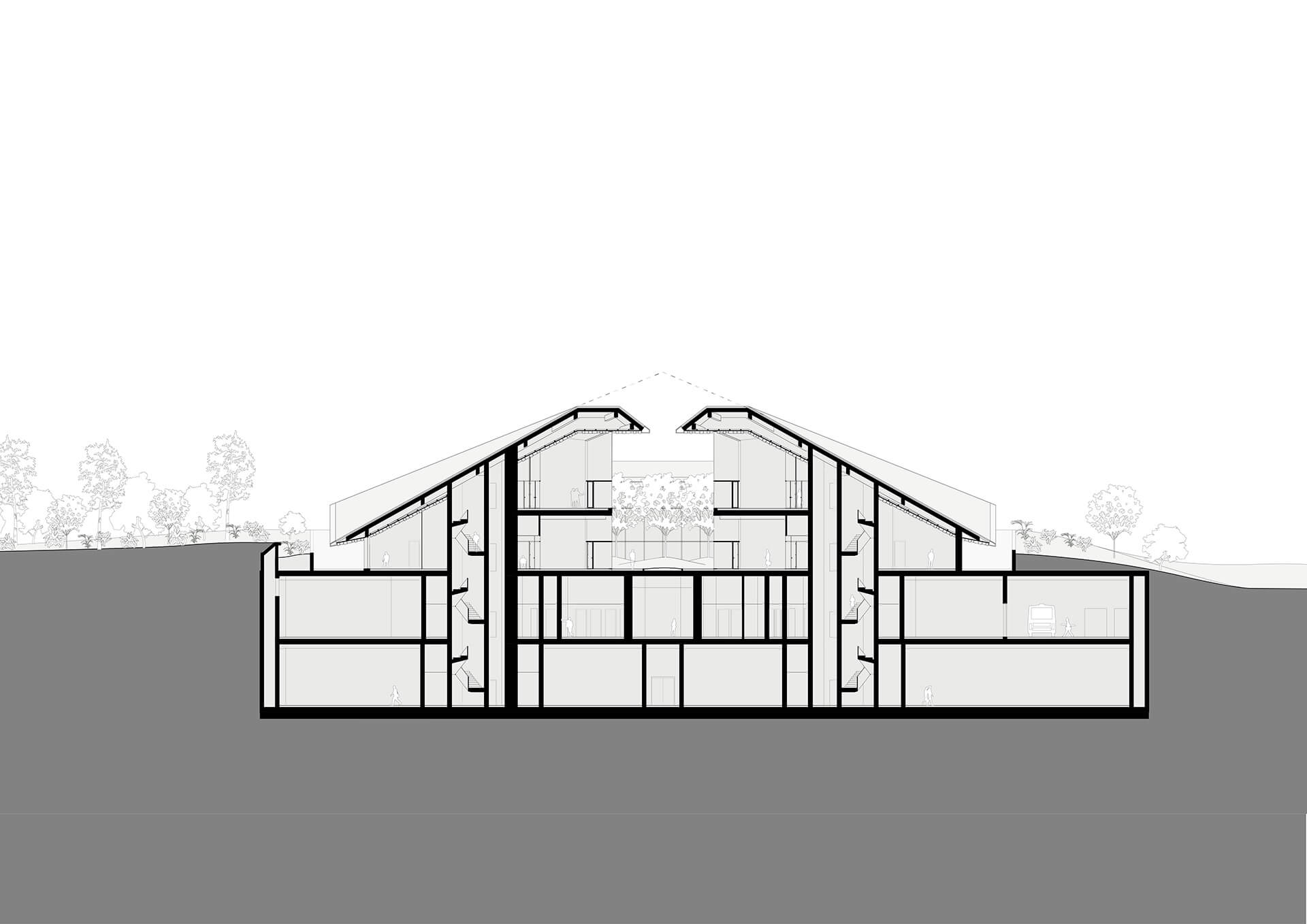 The spatial organization prioritizes relationships and workflows, structuring the program around a central courtyard that introduces natural light into the working environments while offering visual and physical access to a landscaped outdoor space. This arrangement enhances both functionality and user experience, positioning the depot as an active cultural infrastructure rather than a purely technical repository.