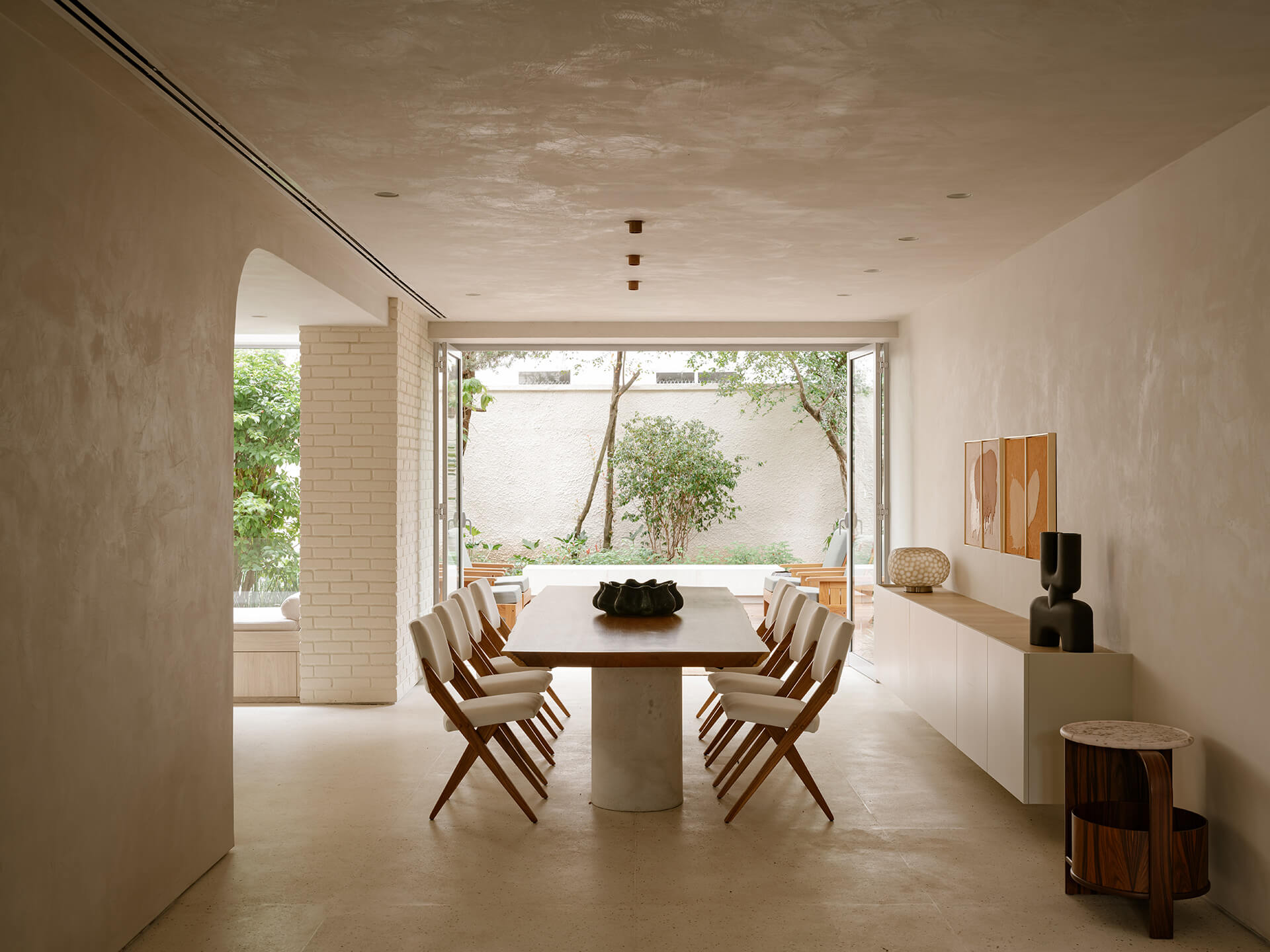 The residence unfolds beneath the generous canopy of a leafy São Paulo neighborhood near Parque Ibirapuera. Designed for a family that values openness and an abundance of natural light, the 560m² residence reflects a philosophy rooted in harmony with nature and sustainable living.