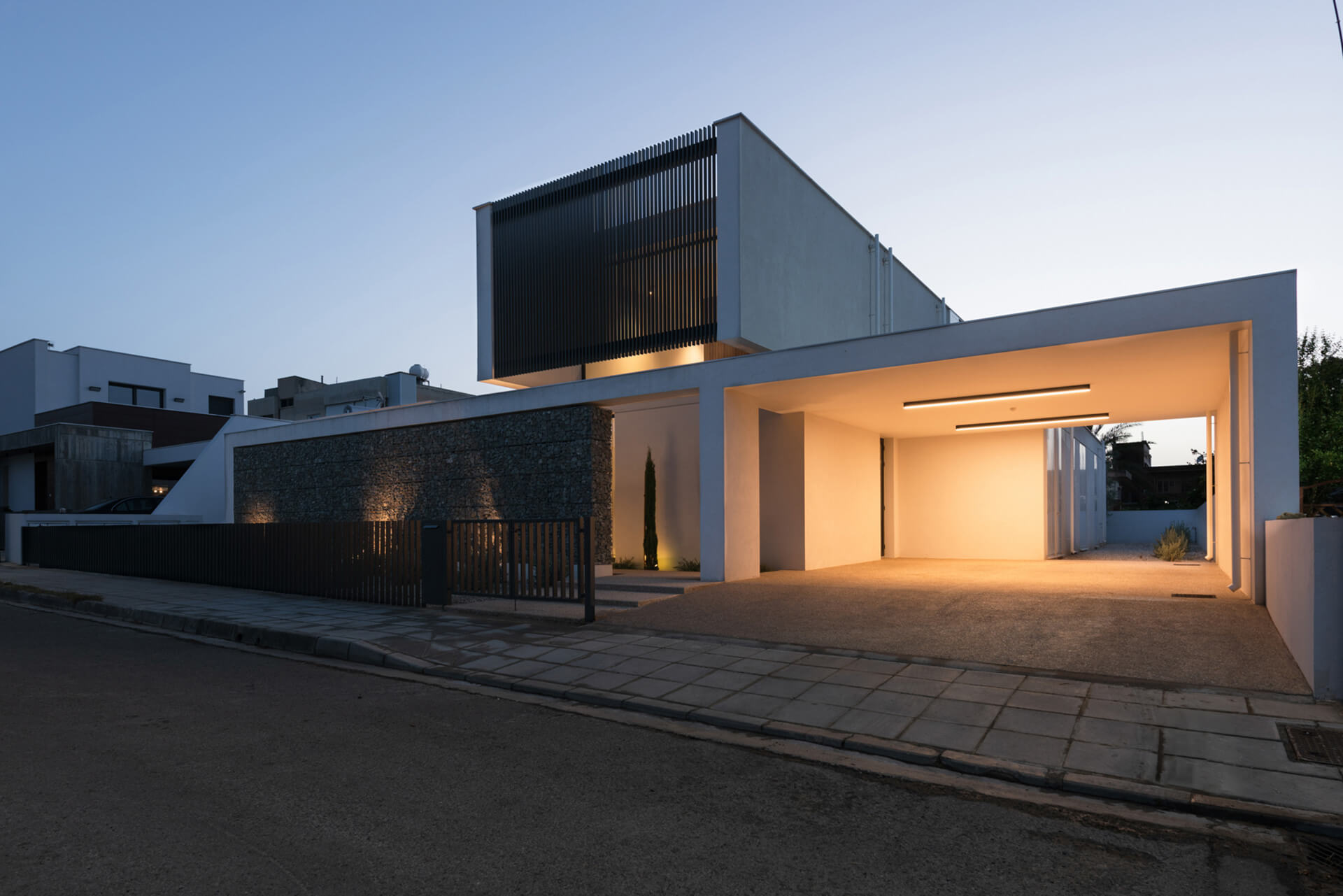 The residence is positioned within the local scale of the Lakatamia area in Nicosia, in a neighborhood characterized by empty plots, limited vegetation, and an abandoned old shoe factory directly across the street.