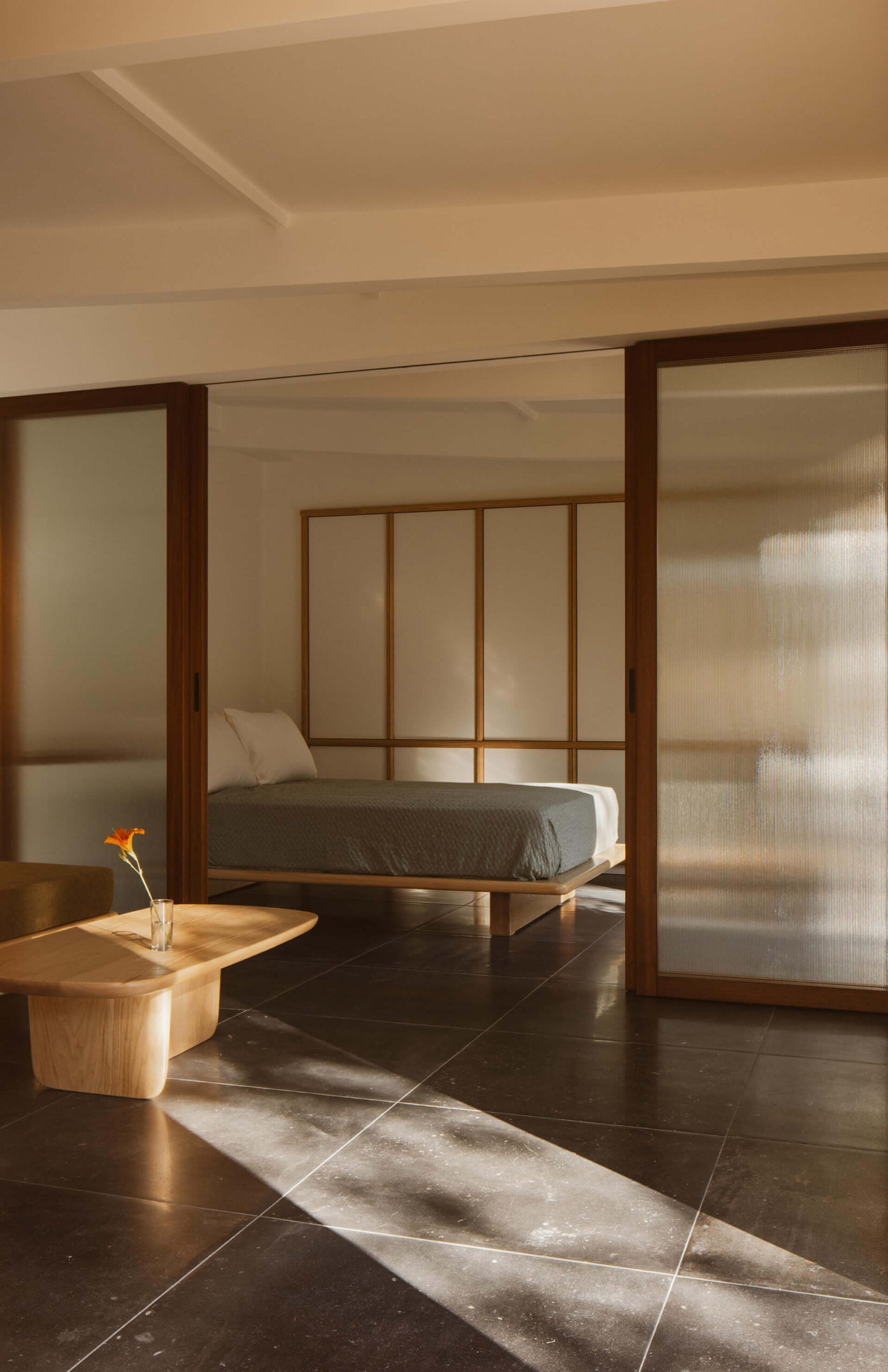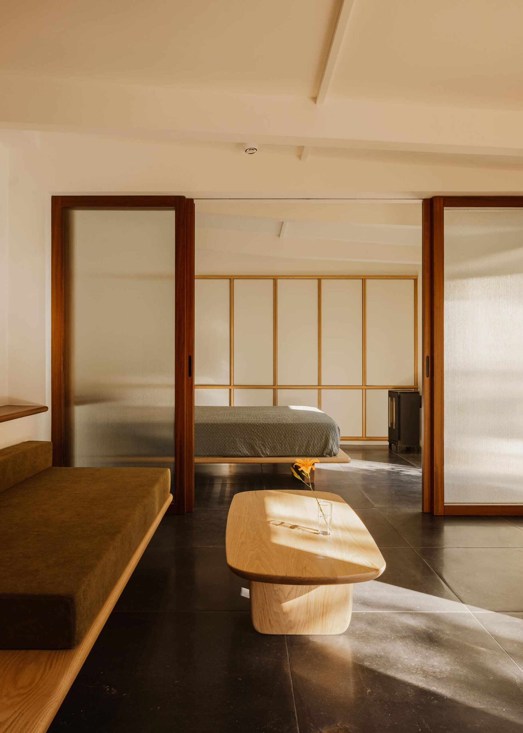 At the core of both spaces is a reverence for craftsmanship. The precise joinery and refined construction details are not merely stylistic choices but expressions of care and intention. Every junction, surface, and bespoke element was designed at a 1:1 scale and realized by skilled local carpenters and glass artisans. Through the use of natural materials and an unwavering attention to detail, the guesthouses exude a sense of calm and timelessness -offering not just accommodation, but a place of retreat.