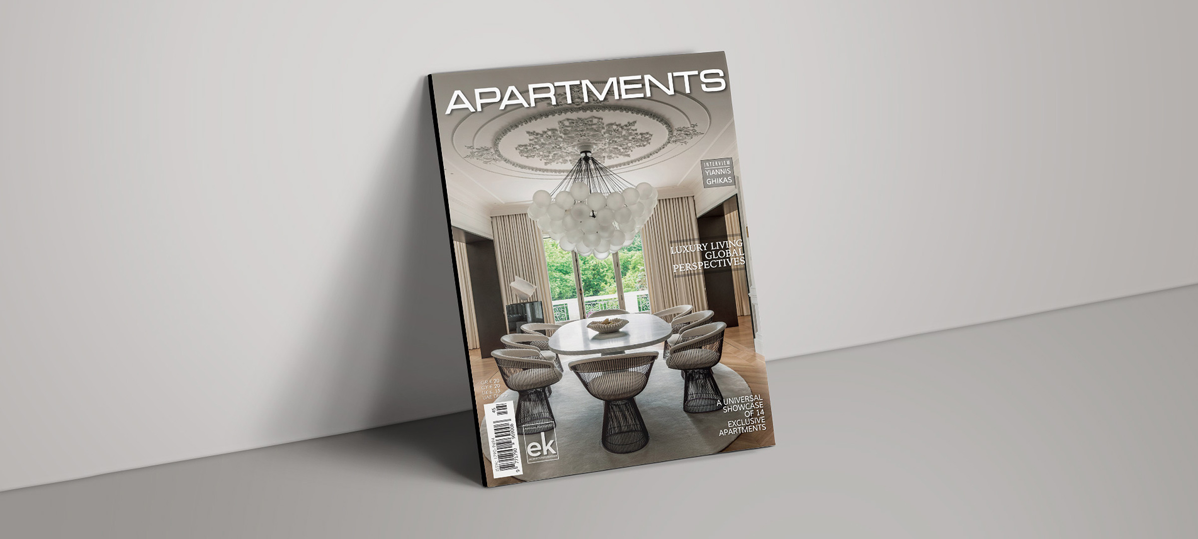 Apartments is an annual international edition of ek magazine and is available in the following countries: Greece, Cyprus, Australia, Germany, Italy, Korea, Spain, United Arab Emirates (Dubai, Abu Dhabi, Qatar), the United Kingdom, and the United States.