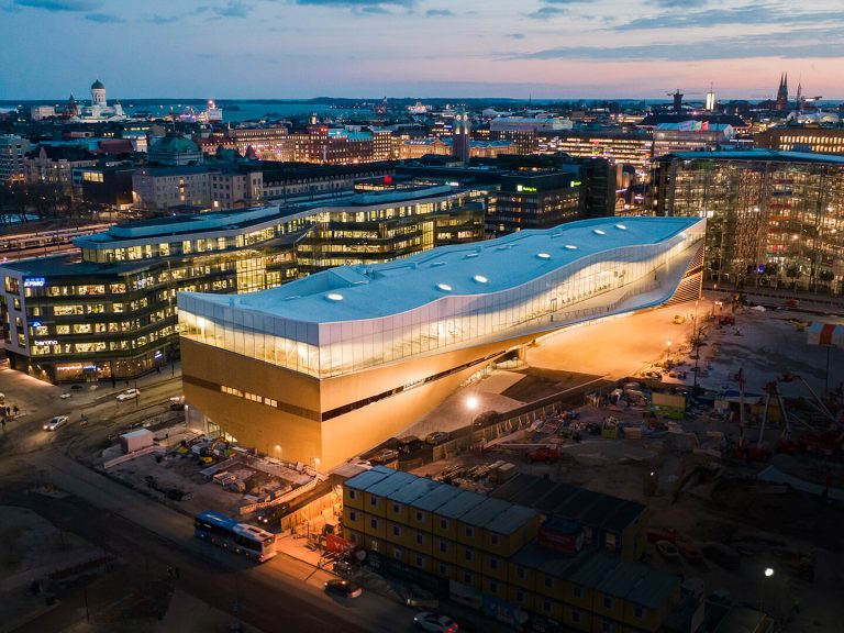 A serene, unified space floating above the Finnish capital.