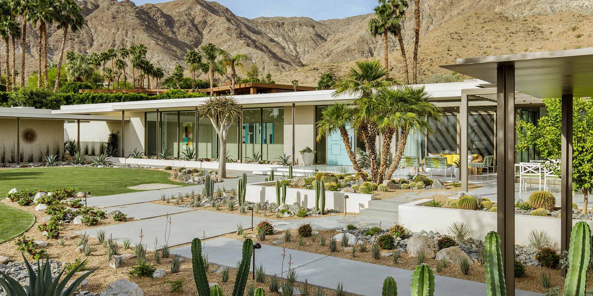 Originally built in the 1960s, the challenge for this project was how to update a mid-century modern house without sacrificing its charm. Situated on a large site perched on a plateau above Coachella Valley, the rugged, inhospitable Santa Rosa Mountains rise immediately from the back yard.