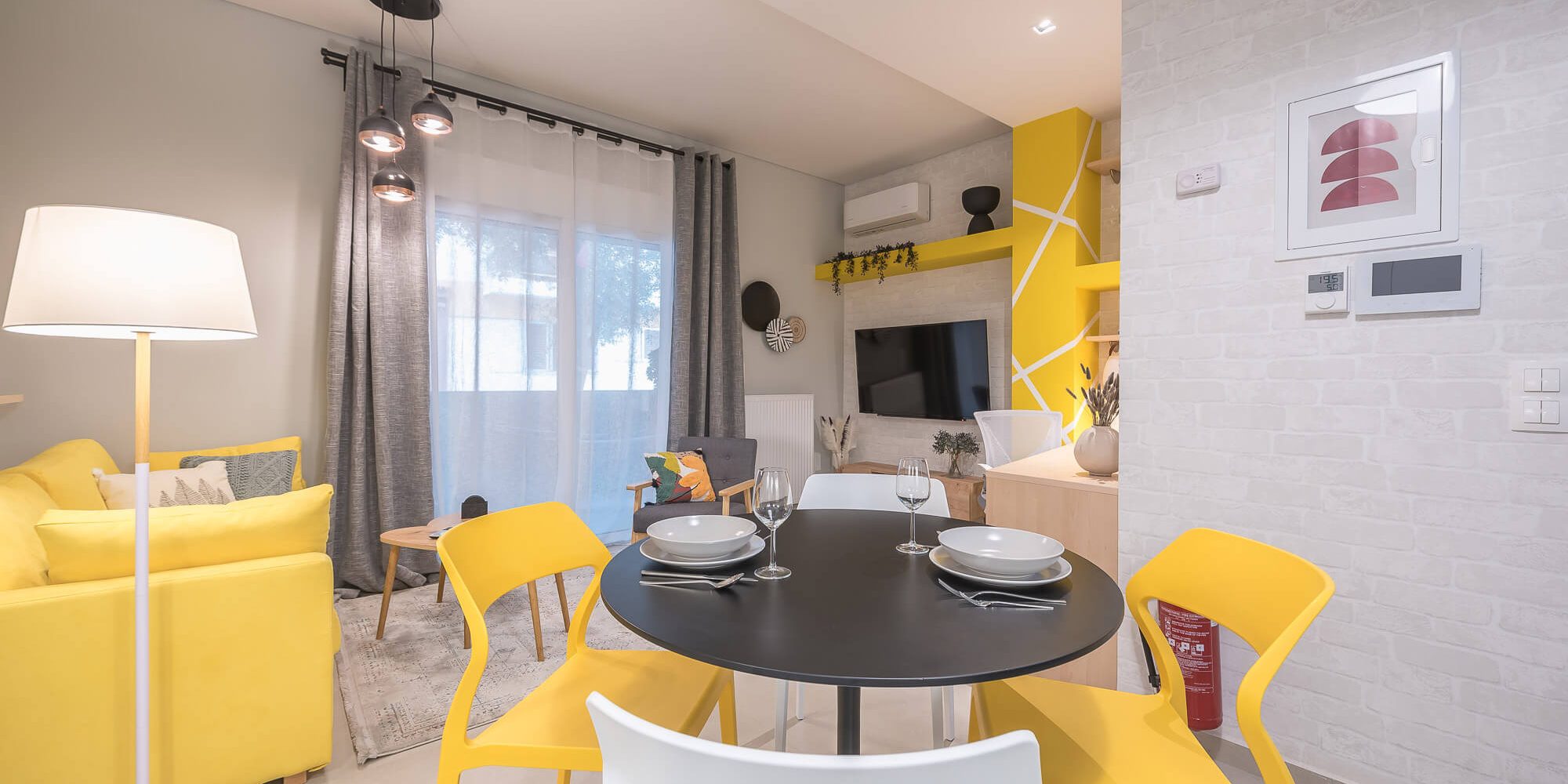 The project focuses on the redesign of an already new but small and conventional apartment that lacked a distinctive character. With minimal construction interventions, careful color selection, suitable furnishings, necessary equipment, and decoration that would suit the youthful couple-client, a transformation was achieved that upgrades the existing space.