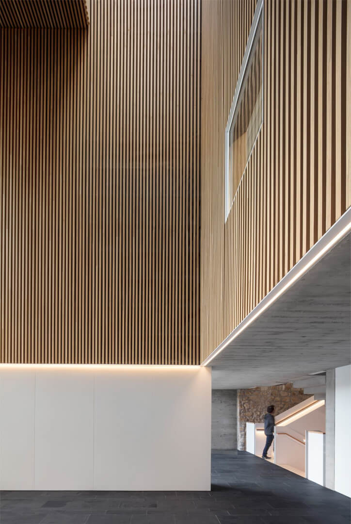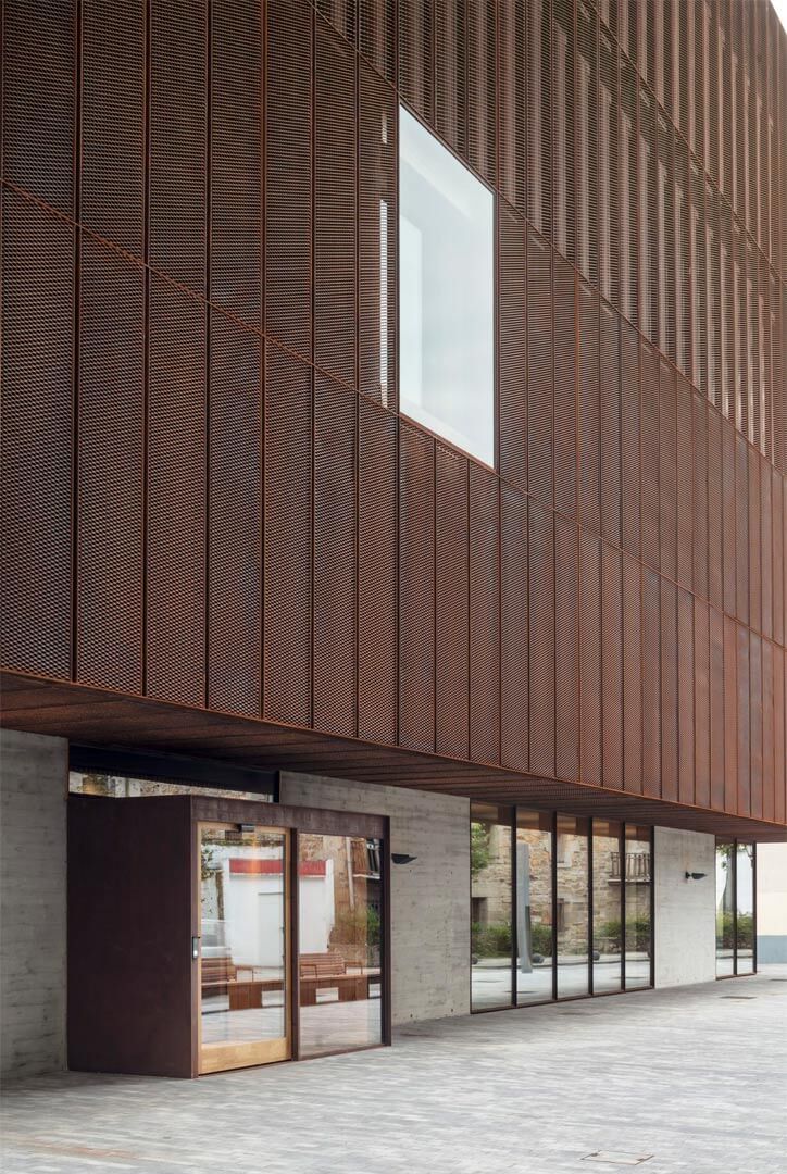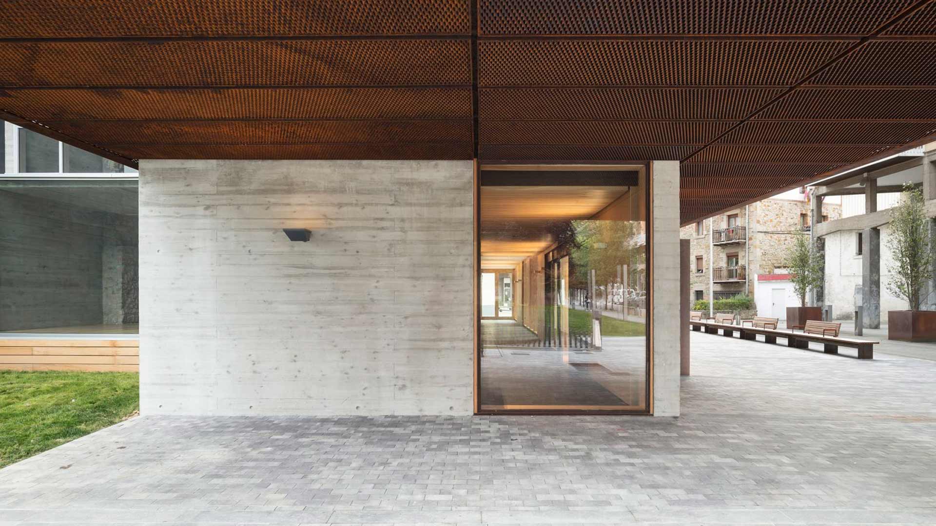 The building transforms the existing dividing wall into an additional façade, completing and redefining the perimeter of the current complex. The original wall of the adjoining frontón ballcourt is preserved and elevated as the central protagonist of the intervention. By exposing and layering the successive walls, the project makes the passage of time legible, allowing traces of the site’s history to remain visible. In doing so, the design safeguards local heritage and collective memory, integrating them into the contemporary architectural language.