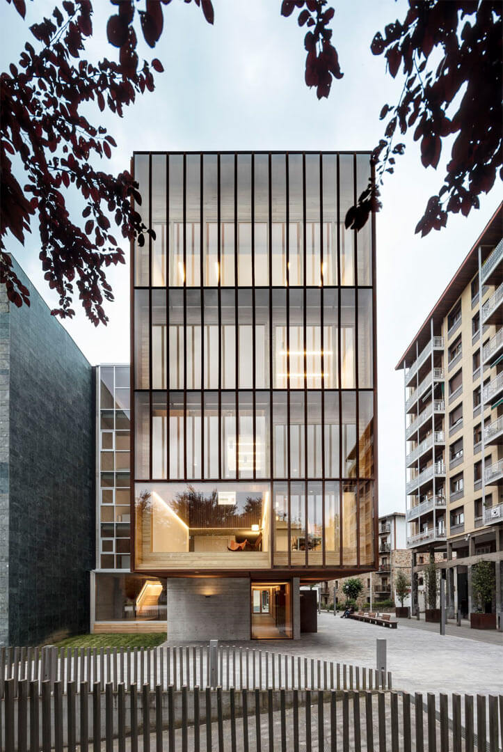 The new Zubiaur Musika Eskola in Amorebieta-Etxano, on the outskirts of Bilbao, emerged from an architectural competition held in 2015. Conceived as both an addition and a reinterpretation of its context, the project establishes a clear dialogue with the existing facilities while asserting its own architectural identity.